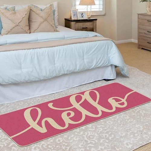 30 Days Return Policy Fast Delivery Trusted seller Pink Hello Valentine's Day Doormat, Spring Summer Home Decor Low-Profile Switch Rug Door Mat Floor Mat for Indoor Outdoor 17x47 Inch Product Description PERFECT FOR HOME DECOR : Welcome guests to your home with this unique, seasonal doormat. Perfect for any deck, patio, porch, veranda, and entryway and extend a warm welcome to all who enter your home DURABLE AND NON-SLIP : Backed with non-slip recycled rubber and topped with polyester felt that is low-profile to reduce chances of tripping, high-quality durable construction that is stain resistant LOW-PROFILE DESIGN : Measures 17" x 47" and features 0.25" slim, making it just the right size for every entryway. Our stylish doormats make a beautiful addition to your entryways, craft rooms, and office spaces EASY TO CLEAN : No scrubbing needed. Doormats are quick and easy to clean, just spray off with a hose or use a sponge and mild detergent to clean off dirt or yard debris. Material: 5% Polyester 95% Rubber. Imported, Country of origin: China UNIQUE CUTE DESIGN : Doormat tops were printed with unique and stylish patterns. A beautiful and creative way to decor your home when keeping clean Shipping Returns Payment Shipping Shipping is FREE to all addresses other than APO/PO boxes in the lower 48 states. All our stock ships from US-based warehouses. Shipped via USPS or UPS (depending on location and package weight) Unless stated otherwise, all orders will ship within 24-72 hours of your payment being processed. Check our feedback to see the great reviews of FAST shipping we offer. Returns As our valued customer, we will do our best to make sure the product you receive arrives to you on time and as expected. If you are not satisfied with your purchase, please contact us within 30 days of receiving your order to process a return. Payment We currently accept payment via eBay managed payments only. Once payment is cleared, we will dispatch your shipment within 1-3 business days. Please refer to the "Shipping" tab for more information regarding shipping speed to your destination.