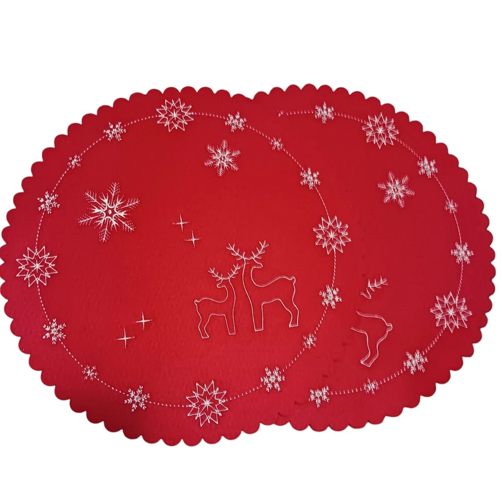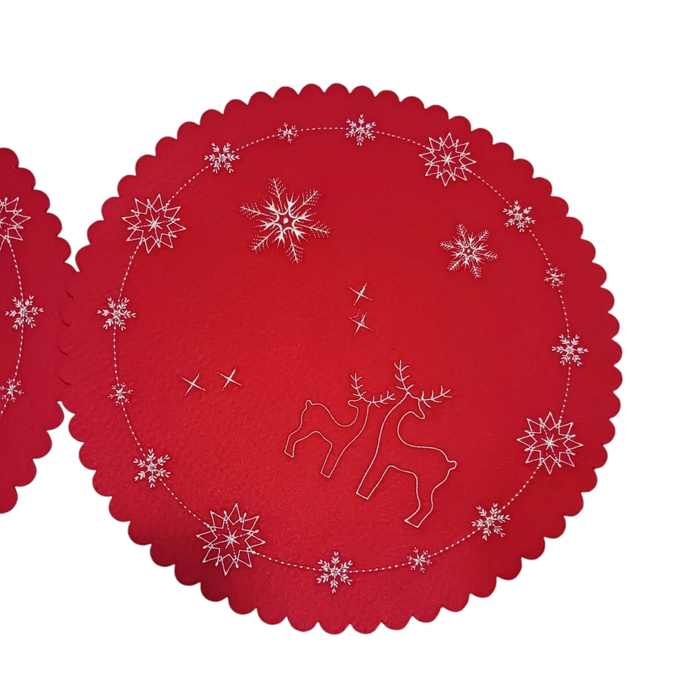 Felt Circle Christmas Decor Placemats Snowflake Reindeer 14" Pair Chargers