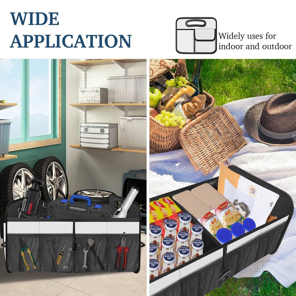 Femuar Car Trunk Organizer Car Storage Organizer with Large Capacity Waterpro... 【Collapsible Trunk Storage】:The trunk organizer for suv collapsible multi compartments with removable divider can fold the size that you need in your car interior and fold away when not in use. Foldable and portable. 【Waterproof Car Organization】:The car organizer trunk with havy duty 600D Oxford cloth waterproof material (durable, dirt-resistant and wear-resistant) is used to ensure the waterproof effect and easy to clean. 【Non-Slip Trunk Oganization】:Velcro non slip bottom to keep it stay in place and keep nothing sliding around or spills from your trunk organizer when you are driving. 【Trunk Organizer for Car】:This is the optimal solution for maintaining a clean car interior as car accessories. Suitable for all vehicle types, like trucks, SUVs, vans, jeeps, cars, etc., and it's fantastic for transporting and arranging groceries, toys, athletic equipment, tools, and more in your trunk. Eliminate trunk clutter situation with this car organizer. eep Your Trunk Tidy with the Foldable Trunk Organizer! This clever car organizers and storage folds up neatly when not in use, making storage a breeze. The wear-resistant and water-resistant oxford material keeps your belongings clean and protected. Non-slip velcro bottom secure the organizer in place and prevent it from sliding around. Stay organized on the go with handy features like: Multiple large compartments for bulky items Mesh pockets for smaller items Reinforced carry handles for easy portability Sturdy walls that hold their shape Compact folding design for slim storage Shipping We offer FREE shipping on all orders! We ship within Three business days of payment, usually sooner. We use a selection of shipping services such as UPS, FedEx, USPS etc. We only ship to the lower 48 states, no APO/FPO addresses or PO Boxes allowed. Local pickups and combined shipping options are not provided at this time. Return You can return a product for up to 30 days from the date you purchased it. Any product you return must be in the same condition you received it and in the original packaging. Please keep the receipt. Payment We accept payment by any of the following methods: PayPal Please pay as soon as possible after winning an auction, as that will allow us to post your item to you sooner! Feedback Customer satisfaction is very important to us. If you have any problem with your order, please contact us and we will do our best to make you satisfied. Contact Us If you have any queries, please contact us via ebay. We usually respond within 24 hours on weekdays. Please visit our eBay store to check out other items for sale! Thank you for shopping at our store.