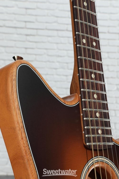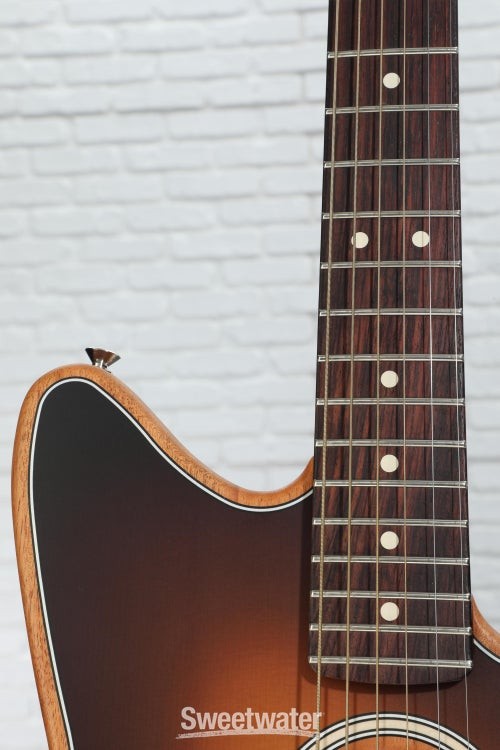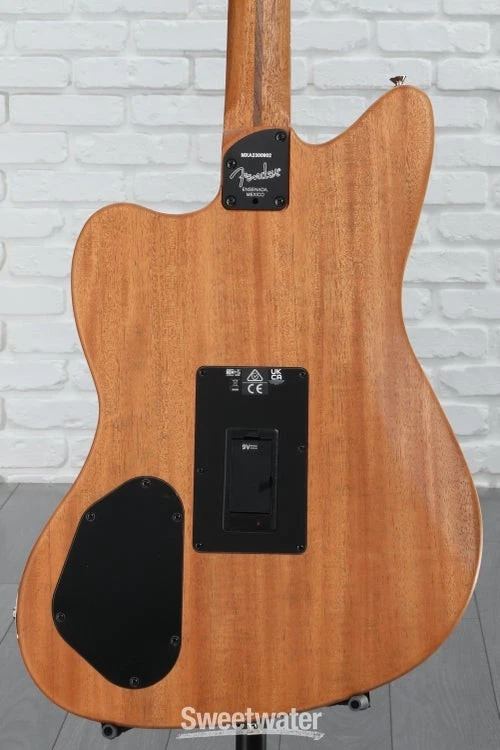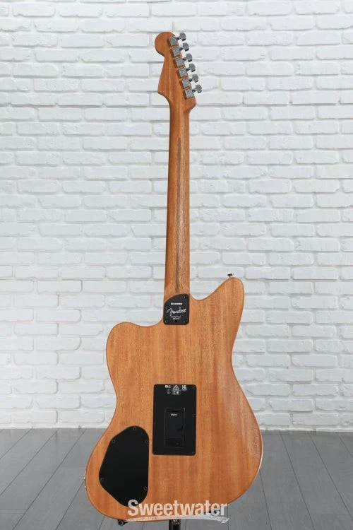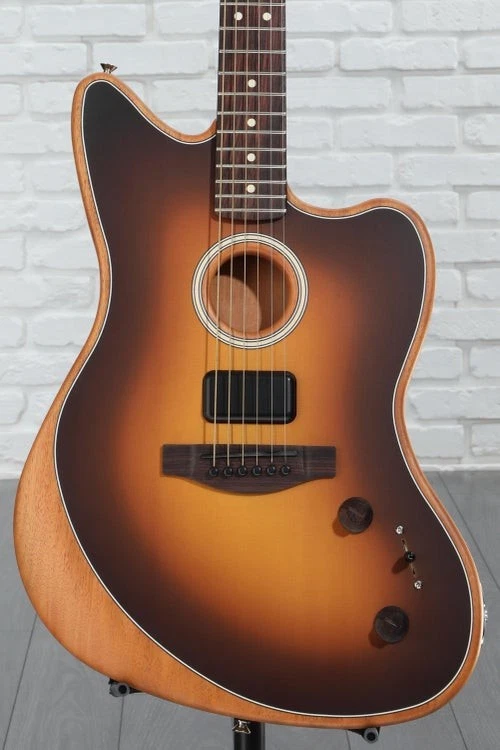 A Hybrid Jazzmaster for the Masses From the couch to the stage to the studio, Fender’s Acoustasonic Player Jazzmaster is a reasonably priced way to break into the hybrid world of the Acoustasonic series! While it may look just like everyone’s favorite surf and shoegaze 6-string, the Acoustasonic Player Jazzmaster’s solid spruce top and mahogany back/sides deliver an impressive unplugged voice that beautifully translates through an amp or PA via the under-saddle piezo pickup. Looking for something a little more aggressive? Simply switch to the Acoustasonic Shawbucker pickup to capture everything from high-gain riffage to soulful strumming. What’s more, a blend knob allows you to mix between these two ends of the tonal spectrum to get the best of both the acoustic and electric world! Finally, a modern deep “C”-profile neck and comfortably contoured slim offset body conjure up an effortless playability that your typical dreadnought can only dream of.Acoustasonic Sweetwater is an Authorized Fender Dealer Genuine Open Box Item Sweetwater's 2-year warranty and 55 point inspection Fender Acoustasonic Player Jazzmaster Acoustic-electric Guitar - 2-Color 6-string Acoustic Electric Guitar with Spruce Top, Mahogany Back and Sides, Mahogany Neck, and Rosewood Fingerboard - 2-color Sunburst A Hybrid Jazzmaster for the Masses From the couch to the stage to the studio, Fender’s Acoustasonic Player Jazzmaster is a reasonably priced way to break into the hybrid world of the Acoustasonic series! While it may look just like everyone’s favorite surf and shoegaze 6-string, the Acoustasonic Player Jazzmaster’s solid spruce top and mahogany back/sides deliver an impressive unplugged voice that beautifully translates through an amp or PA via the under-saddle piezo pickup. Looking for something a little more aggressive? Simply switch to the Acoustasonic Shawbucker pickup to capture everything from high-gain riffage to soulful strumming. What’s more, a blend knob allows you to mix between these two ends of the tonal spectrum to get the best of both the acoustic and electric world! Finally, a modern deep “C”-profile neck and comfortably contoured slim offset body conjure up an effortless playability that your typical dreadnought can only dream of. Acoustasonic Shawbucker bridge pickup Fender Chief Engineer Tim Shaw holds claim to some of the most revered vintage pickup re-creations of our day. Among his more recognized Fender designs is the "Shawbucker" humbucking pickup: a love letter to Tim's more than 35 years of guitar industry service and a major propellent of Fender's HH and HSS electric guitars circa 2015 onward. For the Acoustasonic Player Jazzmaster's specially calibrated Acoustasonic Shawbucker pickup, Tim and Fender went back to the drawing board. "We realized we needed a higher-output pickup than normal because of the unique Acoustasonic body construction," says Tim. "The Acoustasonic Shawbucker has pole pieces that are factory preset from the back, and they’re compensated for bronze strings." This calibration permits pure electric tones you'd never believe could come from an "acoustic" instrument. "When you plug-in and experiment with the Blend control," Tim continues, "You’ll hear electric sounds that go from 'fat and clean' to 'right at home with a 4 x 12 cabinet.'" Plus, as with all Acoustasonic guitars, the Acoustasonic Jazzmaster's spanky, snarly electric tones are designed to sound great running into a traditional speaker cabinet or direct into a full-range PA. Iconic offset style Fender has done a great job of retaining the style and playability of its acclaimed Jazzmaster design for an instrument as advanced as the Acoustasonic Player Jazzmaster. From the familiar offset-waist body to its great-playing, rosewood-capped Modern Deep "C"-profile neck, everything about this guitar will make you feel right at home onstage or in the studio. Its action is a nice compromise between styles: it doesn't bottom out for strums, and it doesn't fret out for leads. Blend up your tone If you’re after a more traditional acoustic tone, the Fender Acoustasonic Player Jazzmaster’s under-saddle pickup captures every nuance of this guitar’s beautiful solid spruce top and resonant mahogany back and sides. It’s the perfect complement to the more traditional electric guitar tones of the Acoustasonic Shawbucker, providing a lush and organic tone that’s ideal for strumming out cowboy chords and tackling your latest fingerstyle masterpiece. However, if you’re feeling experimental, a blend knob allows you to borrow the best elements from this guitar's six fine-tuned electric and acoustic voices, accessed via the 3-way blade switch. Sweetwater guitarists especially love how blending in a bit of the Shawbucker can beef up your piezo’s low end! Fender Acoustasonic Player Jazzmaster Acoustic-electric Guitar Features: Hybrid acoustic-electric Jazzmaster body style is incredibly comfortable to play both sitting and standing Solid Sitka spruce top provides an authentic acoustic resonance and response Mahogany back and sides add a touch of warmth to your tone Mahogany neck in a modern deep “C”-profile is slightly chunky while still retaining electric-like playability Gorgeous rosewood fingerboard in a flat 12-inch radius is ideal for both plectrum-equipped leads and melodic fingerpicking Fender Acoustasonic Shawbucker Magnetic pickup provides everything from searing leads to clean and gentle rhythm tones Under-saddle piezo pickup captures the guitar’s rich acoustic tone for a more organic sound 3-way blade switch offers 6 different tonal voices to choose from (3 for the piezo, 3 for the Shawbucker) Blend knob to mix between your magnetic pickup and the under-saddle piezo Specification Detail Number of Strings 6 Left-/Right-handed Right-handed Body Type Semi-hollowbody Acoustic-electric Body Shape Acoustasonic Jazzmaster Body Material Mahogany Top Material Sitka Spruce Color 2-color S