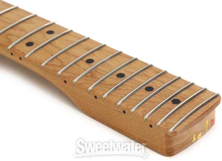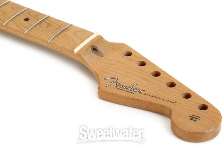 Roasted Maple for Increased Stability This American Professional II Roasted Maple Stratocaster neck is your ideal neck replacement solution for improved playability and a sharp look. Built from roasted maple with a matching roasted maple fingerboard, the deep "C"-shaped neck profile brings classic Strat comfort and agility that you can trust because it was built in the same facility as Fender’s U.S.-made instruments. Sweetwater guitarists find that this model’s unique rolled fingerboard edges provide extra back-of-neck contact space, which means more fretboard access and less strain. Note: Every neck and guitar are different, and a final setup, including filing the nut slots and a final fret leveling, may be required after installation on your guitar. Call your Sweetwater Sales Engineer if you have any questions about upgrading or replacing the neck on your Fender guitar or bass.Roasted maple neck and fingerboard What’s so special about roasted maple? In comparison to Sweetwater is an Authorized Fender Dealer Genuine New Item Sweetwater's 2-year warranty Fender American Professional II Stratocaster - Roasted Maple Roasted Maple Stratocaster Neck with Roasted Maple Fingerboard, Deep "C" Neck, 9.5" Radius, and 22 Narrow-tall Frets Roasted Maple for Increased Stability This American Professional II Roasted Maple Stratocaster neck is your ideal neck replacement solution for improved playability and a sharp look. Built from roasted maple with a matching roasted maple fingerboard, the deep "C"-shaped neck profile brings classic Strat comfort and agility that you can trust because it was built in the same facility as Fender’s U.S.-made instruments. Sweetwater guitarists find that this model’s unique rolled fingerboard edges provide extra back-of-neck contact space, which means more fretboard access and less strain. Note: Every neck and guitar are different, and a final setup, including filing the nut slots and a final fret leveling, may be required after installation on your guitar. Call your Sweetwater Sales Engineer if you have any questions about upgrading or replacing the neck on your Fender guitar or bass. Roasted maple neck and fingerboard What’s so special about roasted maple? In comparison to a standard maple neck, a roasted maple neck’s lower moisture content is said to increase structural stability. This results in greater resistance to changes in environment, ensuring that your neck relief and overall setup remain solid for much longer than with a standard maple neck. Finally, roasted maple’s dark amber hue imparts an elegant edge to any instrument’s aesthetics. Built for performance The American Professional II Stratocaster Roasted Maple Neck’s deep “C” shape is a benchmark for high-performance playability, providing the sleek, fast performance of a standard “C” profile, with just a touch of added heft. Moreover, the flat 9.5-inch radius and narrow tall frets are an excellent choice for players who favor modern playability and effortless bending up and down the fingerboard. Fender American Profession II Stratocaster Roasted Maple Neck Features: Deep "C"-shaped neck profile for classic Strat comfort and speed Smooth rolled fingerboard edges supply more contact space and playability Roasted maple construction provides excellent structural stability 25.5-inch scale length Roasted Mmaple fingerboard with 22 narrow-tall frets and a 9.5-inch fingerboard radius Fender's Super-Natural satin finish ensures maximum comfort Crafted with premium materials, including a bone nut for enhanced tone, resonance, and sustain 4 pre-drilled pilot holes — a 5th pilot hole must be drilled for installation on standard models Built in the same facility as Fender’s USA-made instruments Specification Detail Type American Professional II Guitar Neck Instrument Stratocaster Neck Material Roasted Maple Finish Satin Urethane (Neck), Gloss Urethane (Headstock) Neck Shape Deep C Radius 9.5" Fingerboard Material Roasted Maple Number of Frets 22, Narrow Tall Scale Length 25.5" Nut Width 1.685" Nut Material Bone Peg Diameter 0.404" (peg hole) RETURN INFORMATION We want you to be completely happy with your purchase from Sweetwater. If you are not satisfied with your product, you may return it for a refund of the purchase price within 30 days. If your purchase was eligible for Free Shipping, the shipping cost will be deducted from your credit or refund. Returns must be in the complete and original packaging with all accessories and complete documentation (Owner's Manual, warranty card, quick start guides, etc.), show no signs of wear or use, and include a Return Authorization number or be subject to a restocking fee.