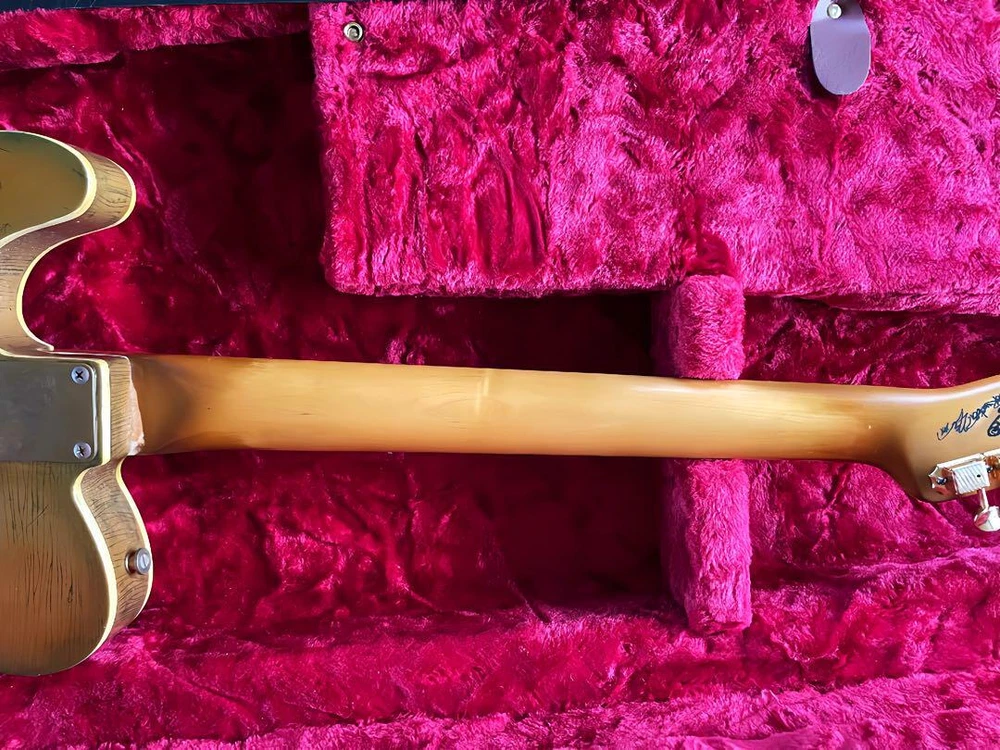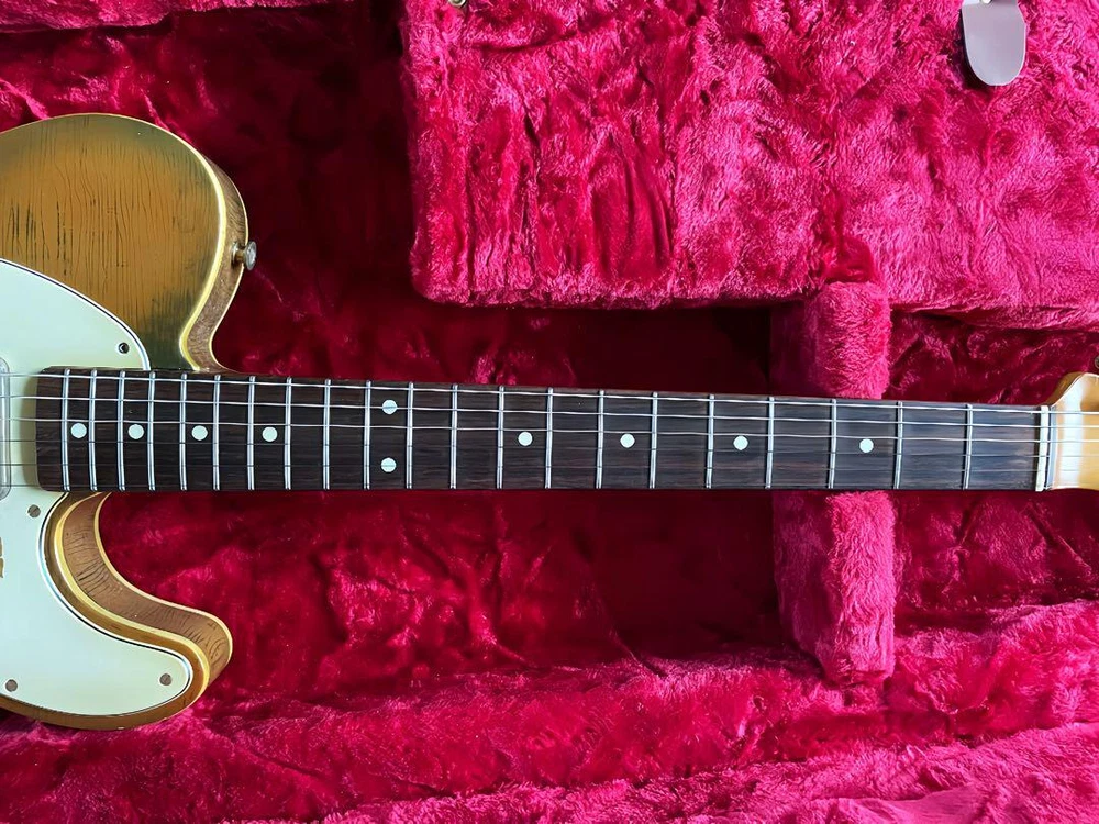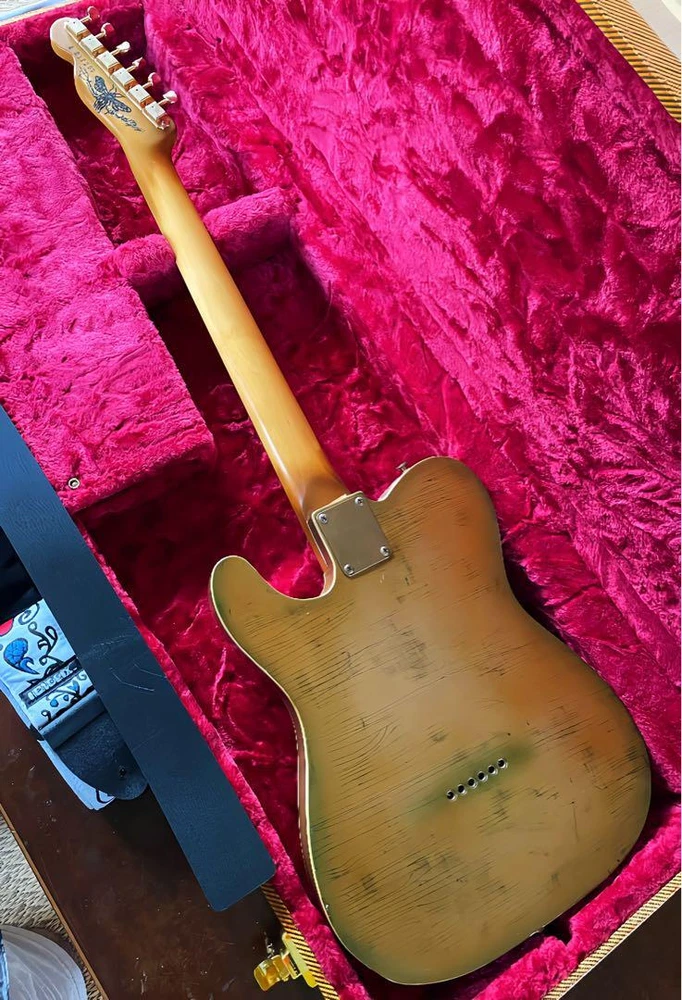 【Notice】 ※You cannot cancel an order after it has been placed and before it has been shiped. (Recently, there have been many cancellations after ordering.Please coisider carefully before purchasing.) ---------------------------------------------------------------------------------------------- 【Item Description】 This is a 90s Fender Japan Custom Telecaster that has been modified by DeliciousTaylormade with brass powder paint and other features! The gold doesn't show up well in the photos and looks whitish, but it's actually gold! All the parts are also relic gold. The frets were recently leveled and are in good playing condition. The truss rod has plenty of room for adjustment. The pickups have been upgraded from Fender USA DeluxeDrive to a brand new Lindy Fralin Broadcaster Set, which is also used on Fullertone Telecasters. It has that classic Telecaster sound, thick and good, like Jimmy Page's early sound! The bridge saddles have been replaced with brass saddles made of the same material as vintage saddles, and the cavity is fully shielded with copper foil. The tuners are relic brass post Kluson-style. The wiring and capacitors are vintage, especially the capacitor, which is a Vintage Dilectron Circle D, also used in vintage Telecasters! This makes the sound with just a little bit of tone rolled off excellent! Most of the mounting screws have been replaced with vintage brass minus screws, and the neck plate has also been replaced with brass. The entire body has a weather check and a brass gold patina. Compared to this, Br○no looks like a toy. The control panel and pickguard have two broken screws, which is the only unfortunate part. It comes with a relic tweed case with a lacquer finish and everything in the ninth picture as a bonus! The Fender USA DeluxeDrive pickup is also included in the Lindy Fralin empty box, so you can sell it or use it for a replacement. A custom Fender Japan Telecaster used, plus a Lindy Broadcaster, a Circle D capacitor, vintage wiring and solder, and a cool case in good condition, making it a one-of-a-kind look! It's definitely worth less than the price. It's a really great guitar, so I'll lower the price if there's no demand. ----------------------------------------------------------------------------------------------- 【Shipping】 Fedex priory (Free shipping, of course) ※Currently, economy service is not available. ※An additional shipping fee of 150 USD is required only for Australia. ※For Australia, we may use DHL. ※EMS is not available. 【Import Duties】 Import duties, taxes and charges are not included in the item price.These charges are buyer's responsibility. Please check with customs for these addtional costs before bidding or purchasing. Even if you ask us about Import duties, we cannot give you an exact amount.