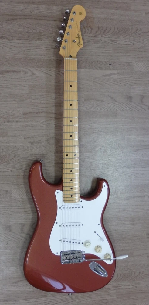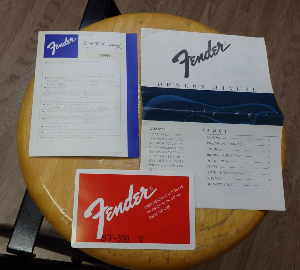 Description We have a USED Fender Japan ST-500V in stock. I think it was made in 1989-1990. AlderBody,Maple1PcNeck/22 frets.The color is Baagundy Mist. There are several modifications. (1) Pegs changed from Rotomatic type to Cruson type (with screw holes fixed, original pegs are included). (2) Bridge saddle replacement (original saddle is included) (3) Pot replaced with CTS x3 and selector sw. (4) Pickups: Front pickup is original. Front pickup is original, center pickup is unknown, rear pickup is Dimazio DP171. (5)There are some wiring materials replaced. (6) Arm bar is non-original. (7) Three control knobs are not original. There are scratches, dents, and deterioration of metal parts, but there should be no problems with normal use. A non-original soft case is included. About Us If you have any problem, please contact us. Your satisfaction is important to us. We have results that I sold of tens of thousands of by Internet sale. We have pride ourselves in the Quality of items we offer. All our items has been checked by technician. As every seller dealing with pre-owned branded items in Japan we have as well license from local government to offer services of this kind. We are officially registered as legal business and we have to comply with all rules and regulations including tax requirements from the Japanese government. International Buyers - Please Note: Import duties, taxes and charges are not included in the item price or shipping charges. These charges are the buyer's responsibility. Please check with your country's customs office to determine what these additional costs will be prior to bidding/buying. These charges are normally collected by the delivering freight (shipping) company or when you pick the item up - do not confuse them for additional shipping charges. We do not mark merchandise values below value or mark items as “gifts” - US and International government regulations prohibit such behavior.