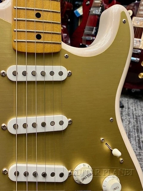 Description The Fender Japan Stratocaster is extremely popular due to its stable quality and rich lineup. This is a 2013 model with a lightweight ash body. Expresses the specifications of the '57 blonde finish and aluminum pickguard. It features a bright and crisp sound with an ash body and a 1-piece maple neck. Mounted with a USA-made "Texas Special" pickup, it outputs a vintage sound with a fat midrange that is hard to drown out. There are scratches, signs of use, and damage to parts that are appropriate for the age. Only about 70% of the frets remain, and the neck and truss rod are in good condition. It is an attractive piece with a weight of less than 3.2kg and a gold anodized pickguard. Please don't miss it! Year: 2013 Frets remaining: 70% Truss rod: OK Scratches: Scratches/dents, paint cracks/chips, head edge chips, fingerboard surface dents, parts dullness/rust/peeling off Replacement parts/modifications: None [spec] Body: Ash Neck: Maple 1pc (Oval Type) Fingerboard: Maple (184R, 21F) Pickup : TEXAS SPECIAL (USA) x 3 Weight: 3.16kg Accessories: Original soft case (damaged), arm Shipping Shipping by FedexorEMS (international express mail service, with Tracking and Insurance, handling cost). Fedex takes 1 week, EMS takes 1-2 weeks. We will ship your item within 5 business days with carefully packed. Returns Money back guarantee within 30 days. We offer 30 days money back guarantee for defective products. The buyer must pay for returning it back to us. When there were defects in a item, please contact us. About Us If you have any problem, please contact us. Your satisfaction is important to us. We have results that I sold of tens of thousands of by Internet sale. We have pride ourselves in the Quality of items we offer. All our items has been checked by technician. As every seller dealing with pre-owned branded items in Japan we have as well license from local government to offer services of this kind. We are officially registered as legal business and we have to comply with all rules and regulations including tax requirements from the Japanese government. International Buyers - Please Note: Import duties, taxes and charges are not included in the item price or shipping charges. These charges are the buyer's responsibility. Please check with your country's customs office to determine what these additional costs will be prior to bidding/buying. These charges are normally collected by the delivering freight (shipping) company or when you pick the item up - do not confuse them for additional shipping charges. We do not mark merchandise values below value or mark items as “gifts” - US and International government regulations prohibit such behavior.