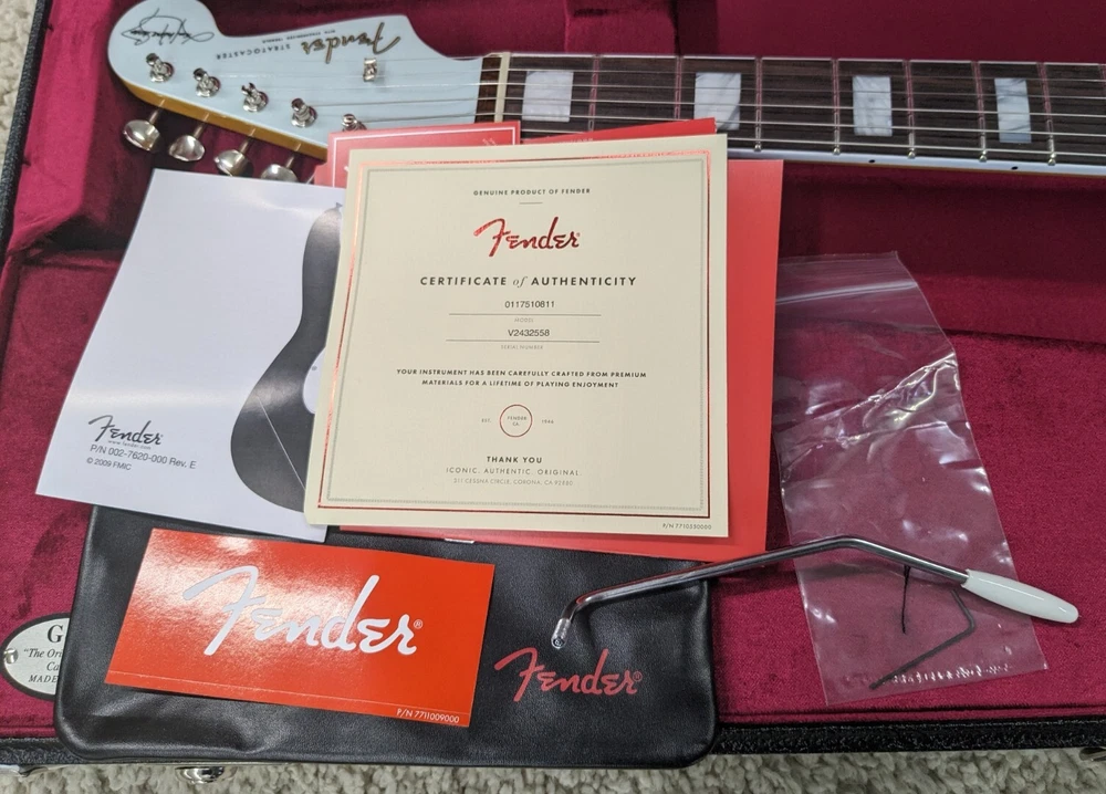 Fender Kenny Wayne Shepherd Stratocaster w/Case, Transparent Faded Sonic Blue Description The photos shown are actual photos of the guitar you will receive. It weighs 6 lbs 14.7 oz. Serial number is V2432558. Kenny Wayne Shepherd's fiery leads, meaty rhythms, and hard-driving songs have propelled his robust career through nine solo records - three certified platinum, major tours with Buddy Guy, Van Halen, and The Rolling Stones, and an ongoing collaboration with blues-supergroup The Rides with Stephen Stills. The Kenny Wayne Shepherd Stratocaster features a chambered ash body for vibrant and resonant tone, while the Transparent Faded Sonic Blue lacquer finish highlights the beautiful ash grain. The early '60s inspired "C"-shaped maple neck and bound rosewood fingerboard - with a 7.25" radius - offer comfort and playability straight out of Fender's golden age. Loaded with three Kenny Wayne Shepherd custom pickups, this guitar delivers punchy and full-throated Strat tones. FEATURES Chambered ash body with Transparent Faded Sonic Blue lacquer finish Matching painted headcap 25.5" scale; early '60s "C"-shaped maple neck with bound rosewood fingerboard, 7.25" radius and 21 jumbo frets Kenny Wayne Shepherd custom spec single-coil Stratocaster pickups Updated vintage-style hardware; six-point synchronized tremolo bridge with Graph Tech® saddles and vintage-style tuning machines Specs SKU: 0117510811-V2432558 – Manufacture: Fender Default Specs Case included Yes Handedness Right handed Type Electric Country of Manufacture United States Number of Strings 6 Listing Type Instrument Guitar < > Butler Music LLC Powered by SaleTurf