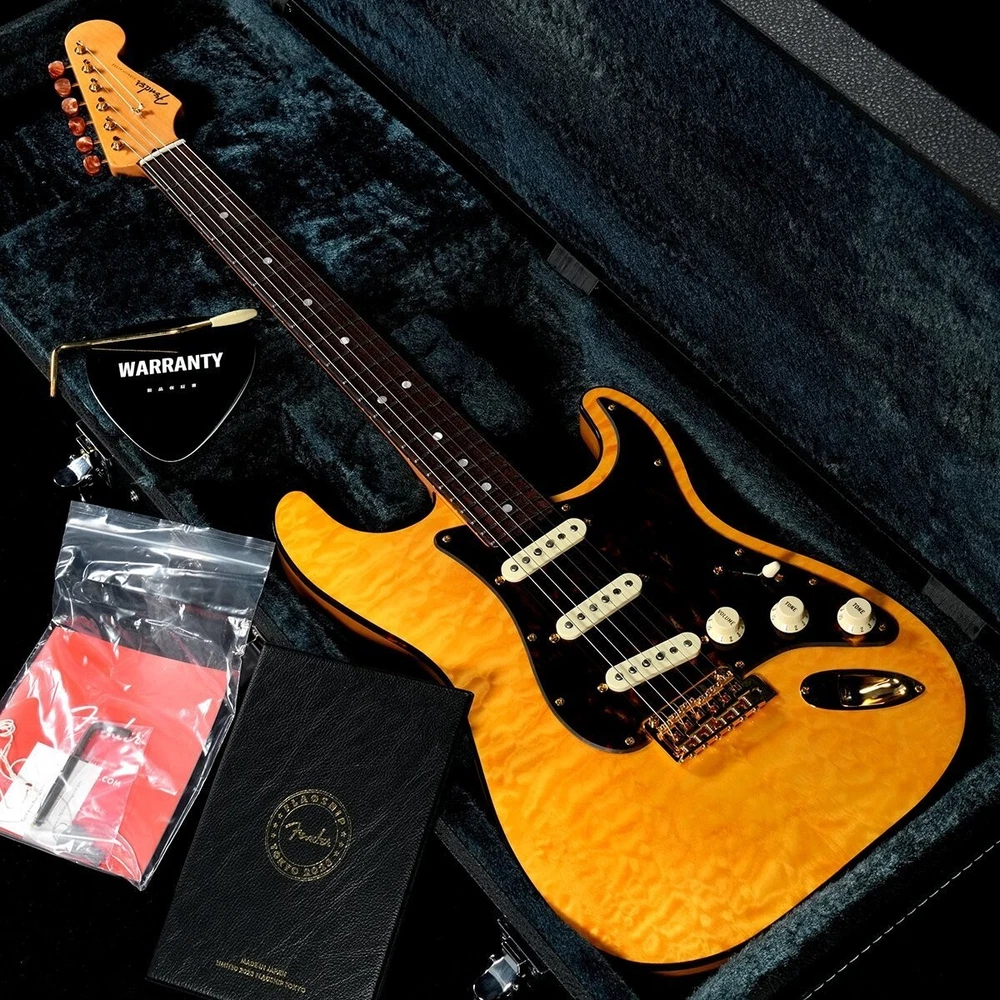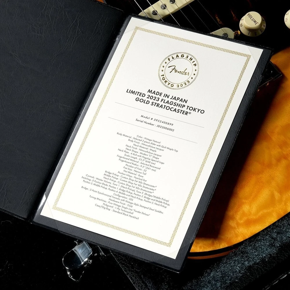Description Fender / Limited 2023 Flagship Tokyo Gold Stratocaster is now in stock used! ! This Made in Japan model is a Flagship Tokyo limited edition model specially developed to commemorate the opening of the flagship store. Quilted maple is attached to a high-quality two-piece alder body, and selected maple and rosewood fingerboard are used for the neck, and both the neck and body are finished with lacquer paint. The pickup is equipped with a Custom Shop Fat60s Stratocaster Pickup, and the tortoiseshell binding, pickguard, and peg buttons give it a luxurious design. There is some tarnish on the gold parts, but there are few dents or scratches and it is in relatively good condition. Of course, the playability is also good. Please consider this opportunity. Product rank: B+: Some scratches, but no problem for normal use Country of manufacture: Japan Year of manufacture: 2023 Serial number: JD23006002 Case: Hard case/genuine Weight: 3.44kg Frets remaining: Enough Truss rod: Space to tighten/loosen Neck condition: Good Accessories: Spec sheet, papers, arm Notes: Other accessories are only those shown in the image. Shipping Shipping by FedexorEMS (international express mail service, with Tracking and Insurance, handling cost). Fedex takes 1 week, EMS takes 1-2 weeks. We will ship your item within 5 business days with carefully packed. Returns Money back guarantee within 30 days. We offer 30 days money back guarantee for defective products. The buyer must pay for returning it back to us. When there were defects in a item, please contact us. About Us If you have any problem, please contact us. Your satisfaction is important to us. We have results that I sold of tens of thousands of by Internet sale. We have pride ourselves in the Quality of items we offer. All our items has been checked by technician. As every seller dealing with pre-owned branded items in Japan we have as well license from local government to offer services of this kind. We are officially registered as legal business and we have to comply with all rules and regulations including tax requirements from the Japanese government. International Buyers - Please Note: Import duties, taxes and charges are not included in the item price or shipping charges. These charges are the buyer's responsibility. Please check with your country's customs office to determine what these additional costs will be prior to bidding/buying. These charges are normally collected by the delivering freight (shipping) company or when you pick the item up - do not confuse them for additional shipping charges. We do not mark merchandise values below value or mark items as “gifts” - US and International government regulations prohibit such behavior.