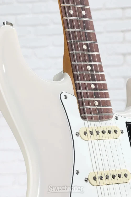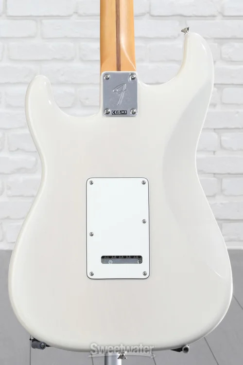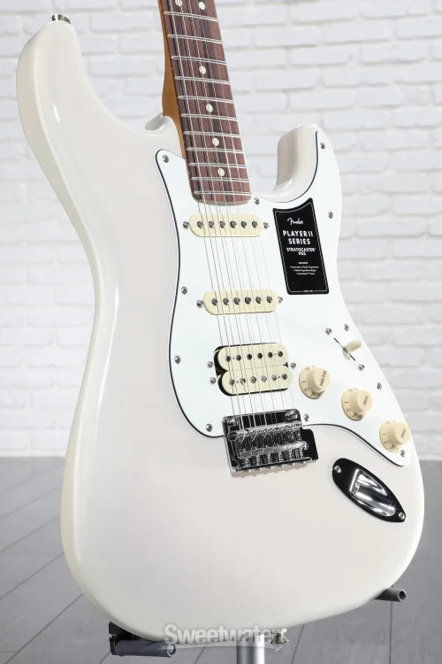 Ready, Player II — Enhanced Modern Performance Blending historic Fender panache with the necessary tools for modern performance, the Fender Player II Stratocaster HSS delivers a suite of versatile tone-crafting capabilities. A trio of premium tonewoods comprises chambered ash, rosewood, and maple, while Player series pickups span a spectrum of shimmering highs, tight lows, and sonorous midrange. Guitarists at Sweetwater are thrilled with Fender’s decision to introduce rolled edges to each axe’s fingerboards, augmenting both comfort and accessibility. What’s more, Fender dove deep into the archives to resurrect iconic finishes — some of which have never been seen in the series! Between eye-catching aesthetics and a 2-point synchronized tremolo, the Fender Player II Stratocaster is your key to unparalleled expression and next-level playability.Time-tested foundations Fender’s origins are synonymous with the electric guitar revolution, and the Player II Stratocaster is imbued with the same foundational DNA. Its chambered ash body anchors Sweetwater is an Authorized Fender Dealer Genuine New Item Sweetwater's 2-year warranty* and 55 point inspection Fender Player II Stratocaster HSS Electric Guitar - White Blonde Solidbody Electric Guitar with Chambered Ash Body, Maple Neck, Rosewood Fingerboard, 1 Humbucking Pickup, and 2 Single-coil Pickups - White Blonde Ready, Player II — Enhanced Modern Performance Blending historic Fender panache with the necessary tools for modern performance, the Fender Player II Stratocaster HSS delivers a suite of versatile tone-crafting capabilities. A trio of premium tonewoods comprises chambered ash, rosewood, and maple, while Player series pickups span a spectrum of shimmering highs, tight lows, and sonorous midrange. Guitarists at Sweetwater are thrilled with Fender’s decision to introduce rolled edges to each axe’s fingerboards, augmenting both comfort and accessibility. What’s more, Fender dove deep into the archives to resurrect iconic finishes — some of which have never been seen in the series! Between eye-catching aesthetics and a 2-point synchronized tremolo, the Fender Player II Stratocaster is your key to unparalleled expression and next-level playability. Time-tested foundations Fender’s origins are synonymous with the electric guitar revolution, and the Player II Stratocaster is imbued with the same foundational DNA. Its chambered ash body anchors your tone in a sonically focused cornerstone, with strong fundamentals and full-spectrum definition that won’t sacrifice clarity for presence. Maple adorns the neck, adding warmth and brightness in every register, with excellent voicing that ensures everything is crisp, powerful, and never harsh, from complex chords to roaring leads. Capping the tonal triumvirate is a rosewood fingerboard, supplementing your sound with a crystalline, glass-like veneer. Contemporary tone-sculpting tools To bring these sonic foundations to life, Fender meticulously crafted the Player series pickups to marry classic Fender style with contemporary tone-building necessities. This Player II Stratocaster deploys an HSS configuration. An Alnico II humbucker delivers punchy, articulate tones that maintain a crystalline veneer, taming cloying highs without compromising heat or thinning out at higher gain. Both Player series Strat single-coil pickups utilize Alnico V magnets, expanding this guitar’s aural profile with glass-like transparency and percussive chime. With the aid of a 5-way blade switch, dual tone controls, and a master volume knob, untold worlds of latent sonic potential are waiting to be unearthed. Maximum expressive possibilities Aptly enough, it’s the playability of the Player II Stratocaster that elevates it to the echelon of modern, dynamic performance. The maple neck features a Modern “C” profile and satin finish, optimized for speed and comfort. It’s complemented by a 9.5-inch fingerboard radius, blending versatile accessibility and robust in-hand feel to extract every ounce of sonic possibility from its 22-fret array. Adding to the comfort of the fingerboard’s rolled edge, Fender’s bookended the Player II Stratocaster’s 25.5-inch scale with ClassicGear tuning machines and a 2-point synchronized tremolo with bent steel saddles. With rock-solid tuning and reliable buzz-free sound, the Player II Stratocaster expands your sonic palette for maximum expressivity, from subtle vibrato to roaring, evocative dives. Fender Player II Stratocaster HSS Features: Revamped series design marries classic Fender style with modern performance necessities Chambered ash body anchors tone powerful fundamentals and focused articulation Maple neck imparts shimmering brightness to your sound to enhance clarity in voicing for chords, licks, leads, and solos Rosewood fingerboard provides crystalline depth that won’t compromise voicing or presence Player series pickups utilize Alnico II magnets in the bridge-mounted humbucker and Alnico V magnets in the single-coil pickups for premium performance 5-way blade selector is complemented by 2 tone controls and 1 master volume knob, ensuring robust tone-crafting versatility Rolled fingerboard edges, Modern “C” profile, and satin-finished neck maximize speed and comfort to accommodate players of nearly any style 9.5-inch fingerboard radius and 25.5-inch scale maximize sonic-sculpting opportunities with unfettered access to all 22 frets Fender-crafted ClassicGear tuning machines and 1.65-inch synthetic bone nut mean rock-solid performance and buzz-free tones 2-point synchronized tremolo system features bent steel saddles and unrivaled expressive potential Specification Detail Number of Strings 6 Left-/Right-handed Right-handed Body Type Chambered Solidbody Body Shape Player II Stratocaster HSS Body Material Ash Color White Blonde Body Finish Gloss Polyester Neck Material Maple Neck Shape Modern C Neck Joint Bolt-on Radius 9.5" Fingerboard Material Slab