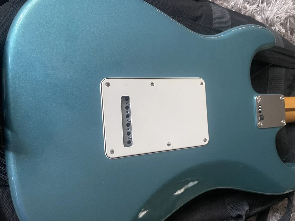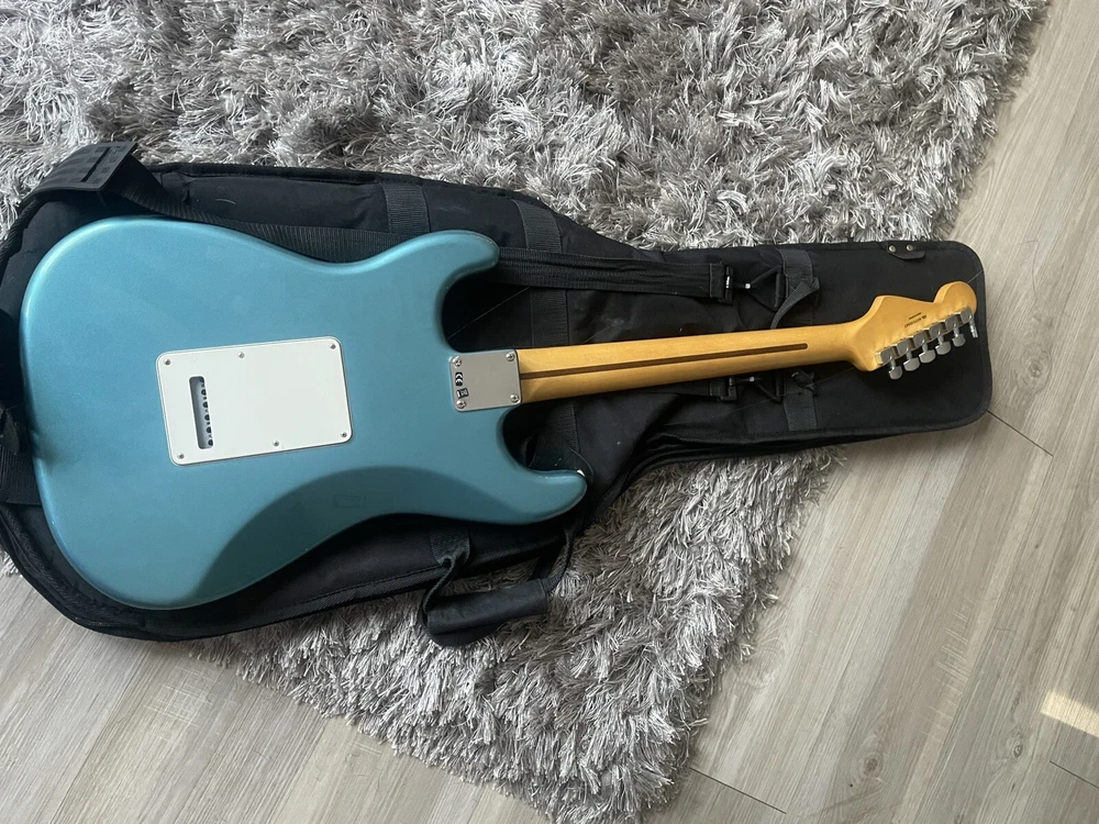 Neck Material: Maple Set Includes: Gig Bag String Configuration: 6 String Brand: Fender Type: Electric Guitar Body Type: Solid Model Year: 2009 Body Color: Blue Handedness: Right-Handed Size: Full-Size Series: Fender Stratocaster Fretboard Material: Maple Model: Player Stratocaster HSS
