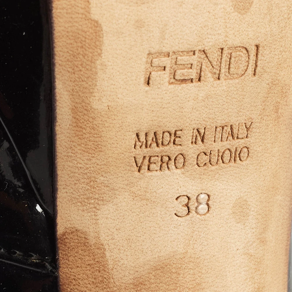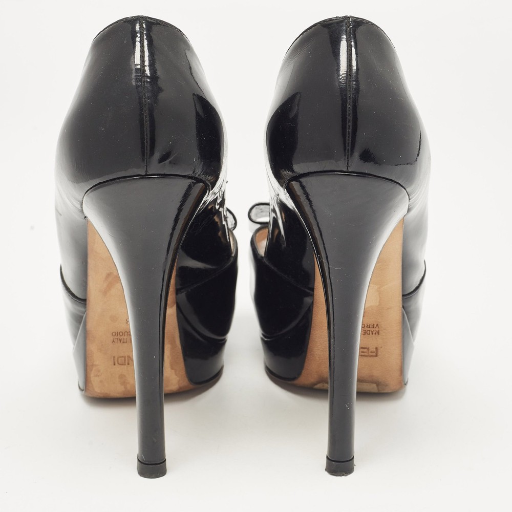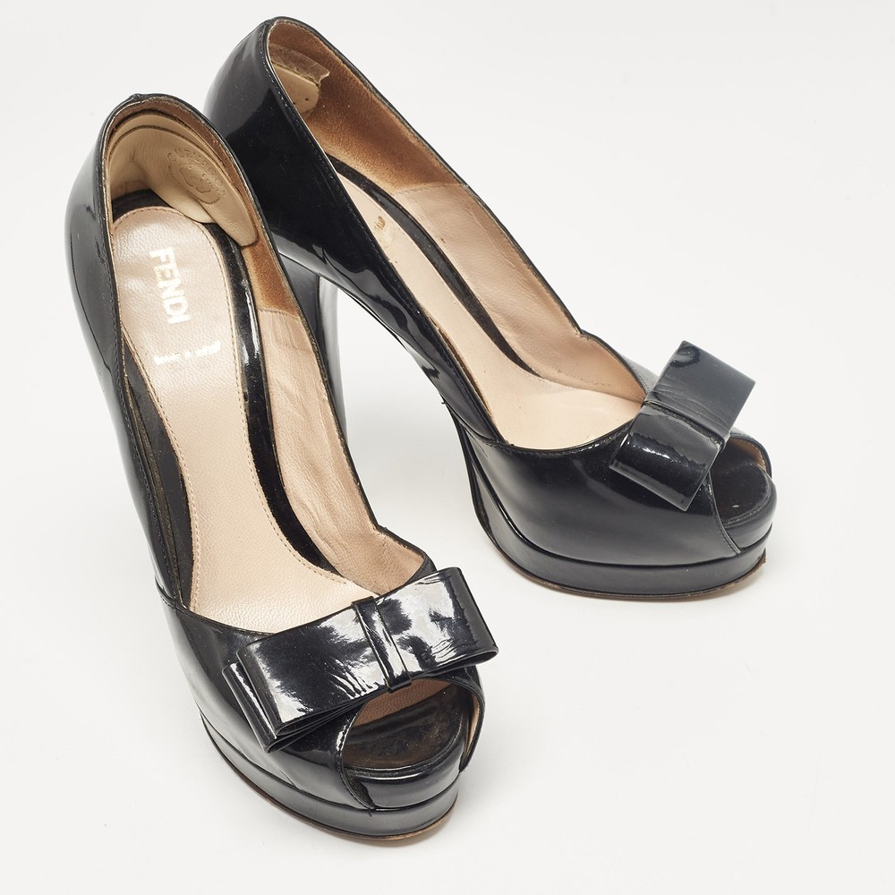 Make a chic style statement with these designer pumps. They showcase sturdy heels and durable soles, perfect for your fashionable outingsCertified by The Luxury Closet - This item has gone through a detailed authentication process overseen by our experts. We offer a lifetime guarantee of authenticity on all our items. Import duties, taxes and charges are not included in the item price. These charges are the buyers responsibility. Please check with your country’s customs office to determine what these additional cost will be prior to buying. Our eBay Store About Us Contact Us Add to Favorite Sellers Fendi Black Patent Leather Bow Peep Toe Platform Pumps Size 38 $151.8 Make a chic style statement with these designer pumps. They showcase sturdy heels and durable soles, perfect for your fashionable outings Product Details Brand Color Black Dimensions Material Patent Leather Size 38 Outsole Width 7.5 cm Outsole Length 18.5 cm Heel Height 14.5 cm Includes The Luxury Closet Packaging Certified by The Luxury Closet This item has gone through a detailed authentication process overseen by our experts. We offer a lifetime guarantee of authenticity on all our items. How We Check The in-house team of experts at The Luxury Closet is highly trained to verify the authenticity and the condition of the luxury products. They ensure that only 100% authentic items are put on sale.The evaluation process is unique with its own mix of assessment criteria and differs according to the category. Each item is evaluated based on the following combination of hallmarks, hardware, stitching, symmetry, material, craftsmanship, stamping, codes, hologram stickers, and packaging. Our authenticators also check if the items have been modified or amended (e.g., aftermarket diamonds, replaced batteries, repaired bags, etc.) International Buyers Import duties, taxes and charges are not included in the item price. These charges are the buyers responsibility. Please check with your country’s customs office to determine what these additional cost will be prior to buying.