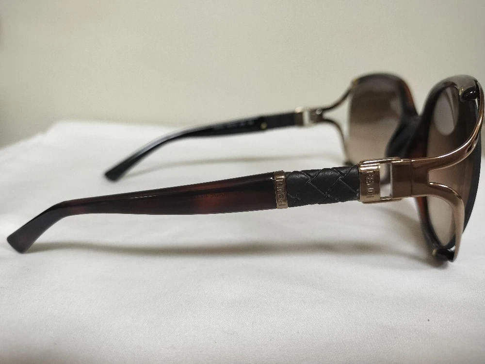 Fendi FS5019 Gradient Brown Leather Women's Sunglasses Case & Cleaning Cloth Features ✔ Elevate your accessory collection with these luxurious Fendi FS5019 gradient brown leather women's sunglasses. Crafted with elegance, these sunglasses feature a stylish gradient lens and a sophisticated leather-like finish on the frame, embodying Fendi's renowned Italian craftsmanship. The set includes a matching Fendi case and a cleaning cloth, ensuring your sunglasses stay pristine. ✔ Designed for comfort and style, the sunglasses have a frame width of approximately 14 cm, lens height of about 5.5 cm, and temple length of around 12 cm. The size notation is 60 16 125, with the frame made from durable plastic with a leather-like coating in a rich brown color . These sunglasses are in near-unused condition , with minor wear on the leather-like temple tips, which can be seen in the photos. They are perfect for fashion-forward individuals seeking high-quality Italian-made eyewear. ✔ Item Specifics: ✔ C: Brand : Fendi ✔ C:Model: FS5019 ✔ C:Category: Women's Sunglasses ✔ C: Condition : Near Mint / Unused ✔ C:Material: Plastic with Leather-like Finish ✔ C: Color : Brown ✔ C:Frame Width: Approximately 14 cm ✔ C:Lens Height: Approximately 5.5 cm ✔ C:Temple Length: Approximately 12 cm ✔ C: Size Notation: 60 16 125 ✔ C: Includes : Fendi Case, Cleaning Cloth ✔ C:Country of Manufacture: Italy ✔ C:Style: Gradient Lens, Fashion Eyewear ✔ C:Additional Features: Logo Detailing, Leather-like Temple Tips (minor peeling) Specifications Brand Fendi Country Japan Description Item Title Fendi Sunglasses, Gradient Brown Leatherfs5019 Payment Supports managed payments Please pay within 5 days after auction is finished. About Us We are located in Japan. It's our pleasure to make you happy by proposing our recommend item. If you have any questions or request about items, please feel free to ask us. International Buyers - Please Note: -Import duties, taxes, and charges are not included in the item price or shipping charges. These charges are the buyer's responsibility. -Please check with your country's customs office to determine what these additional costs will be prior to bidding/buying. -These charges are normally collected by the delivering freight (shipping) company or when you pick the item up - do not confuse them for additional shipping charges. -We do not mark merchandise values below value or mark items as - gifts - The US and International government regulations prohibit such behavior. Thank you for your understanding.