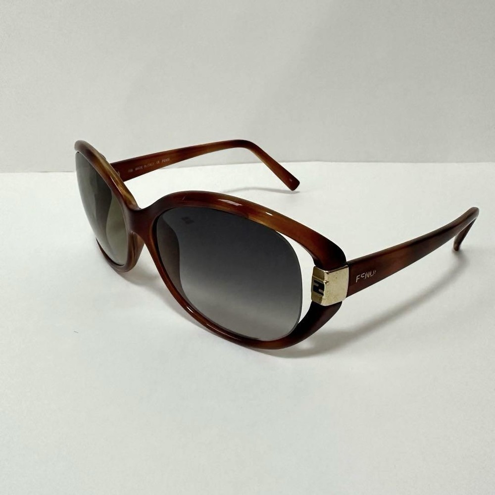 Fendi Gold Frame Oval Sunglasses with Brown Lenses and Black Temples Pre-Owned