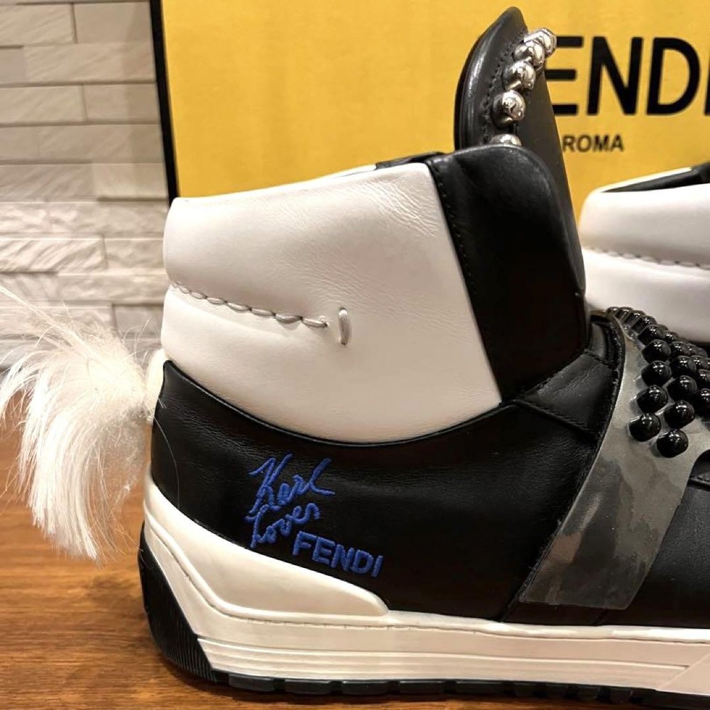 Fendi Karl Lagerfeld HighTop Sneakers Men 7 US Near Collection Features ✔ This listing features a pair of Fendi Karl Lagerfeld High-Top Sneakers for men, size 7 US (approximately 26 cm). Purchased from Isetan's official store, these sneakers are in excellent condition with minimal signs of wear, having been worn only 2-3 times and stored in a dark, indoor environment. They showcase a striking design inspired by Karl Lagerfeld, featuring a three-dimensional sunglasses motif with studs, a fur-inspired heel decoration, and the iconic Karl Lover print on the side. Crafted from durable calfskin leather, these sneakers exude luxury and high fashion, perfect for elevating casual styles. ✔ Key features include their high-quality leather construction, bold design elements, and exclusive brand ing details. They come with a care card and are made in Italy, with an estimated retail value of around 120,000 yen. Please review the photos for detailed condition confirmation. ✔ Item Specifics: ✔ C: Brand : Fendi ✔ C:Category: Shoes ✔ C:Model: Karl Lover High-Top Sneakers ✔ C: Size : 26 cm (US Men's 7) ✔ C: Color : White/Black ✔ C:Material: Leather (Upper), Rubber (Sole) ✔ C: Condition : Excellent, minimal signs of wear, no major damage or stains ✔ C:Country of Manufacture: Italy ✔ C:Features: Three-dimensional sunglasses studs, fur-inspired heel decoration, Karl Lover print on side, high-top design ✔ C:Style: High-Top Sneakers ✔ C:Closure: Not specified ✔ C:Additional Items Included: Care card only ✔ C:Retail Price: Approximately 120,000 yen ✔ C:Notes: No box included, non-returnable due to prevention of switching, shipped as-is Specifications Brand Fendi Country Japan Description Item Title Fendi Karl Lagerfeld High-Cut Sneakers Size 7 Payment Supports managed payments Please pay within 5 days after auction is finished. About Us We are located in Japan. It's our pleasure to make you happy by proposing our recommend item. If you have any questions or request about items, please feel free to ask us. International Buyers - Please Note: -Import duties, taxes, and charges are not included in the item price or shipping charges. These charges are the buyer's responsibility. -Please check with your country's customs office to determine what these additional costs will be prior to bidding/buying. -These charges are normally collected by the delivering freight (shipping) company or when you pick the item up - do not confuse them for additional shipping charges. -We do not mark merchandise values below value or mark items as - gifts - The US and International government regulations prohibit such behavior. Thank you for your understanding.