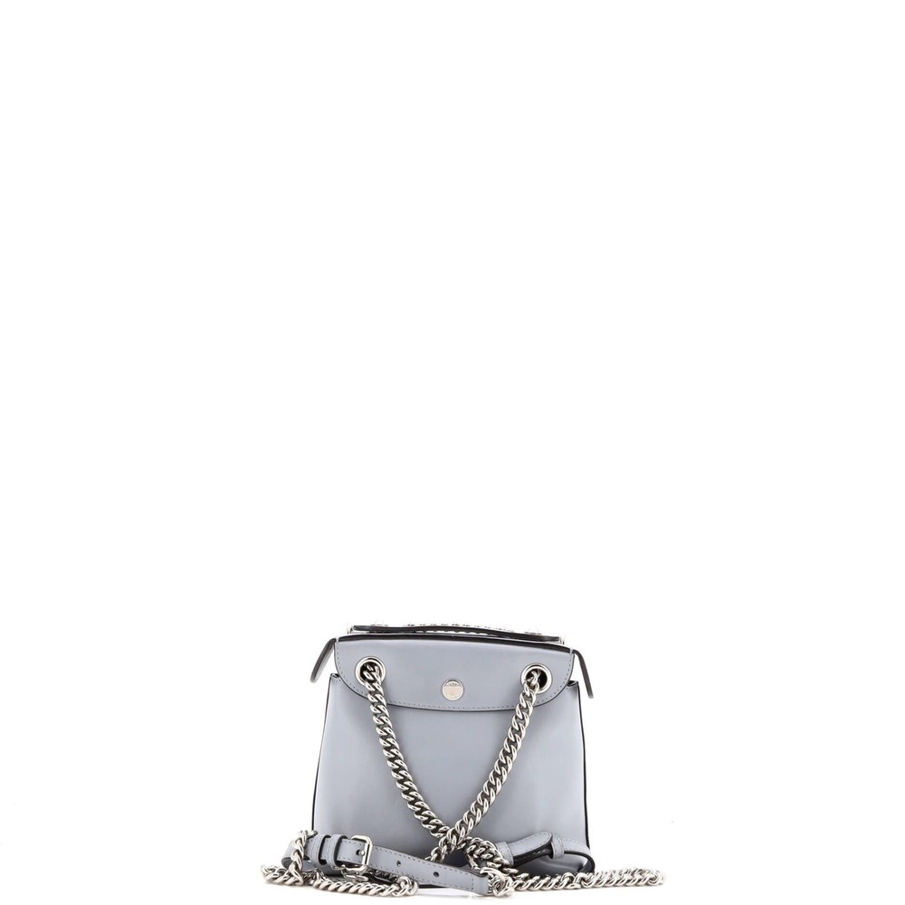 These are professional pictures of the actual item offered by Rebag. Condition: Good. Exterior: corner wear, minor stains, minor creases | Interior: heavy stains, scuffs | Hardware: minor scratches Accessories: Dust Bag Measurements: Handle Drop 22", Height 6", Width 7.5", Depth 4", Strap Drop 11-12" Designer: Fendi Model: Back to School Backpack Leather Mini Exterior Material: Leather Exterior Color: Blue Interior Material: Fabric Interior Color: Black Hardware Color: Silver Item Number: 351934/1