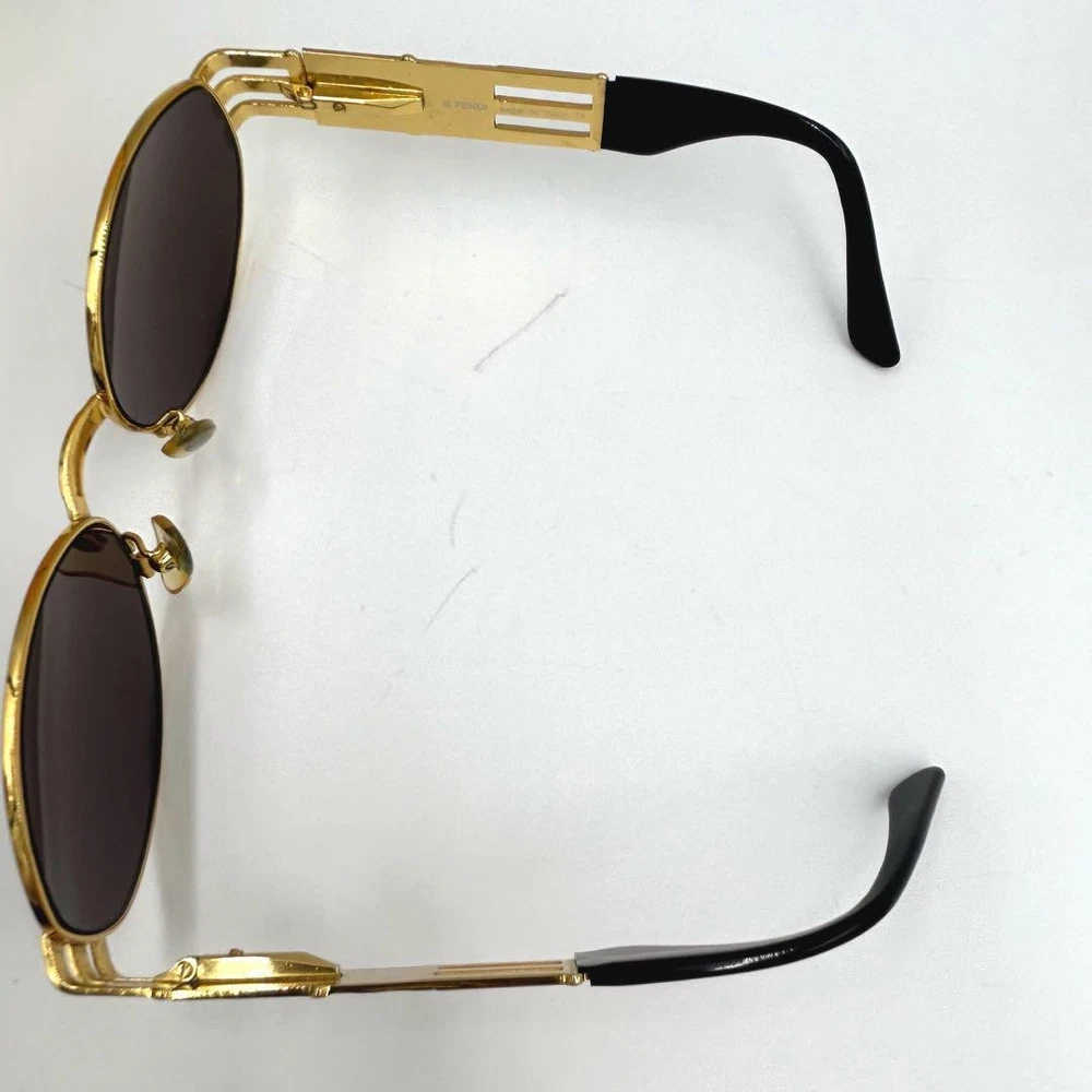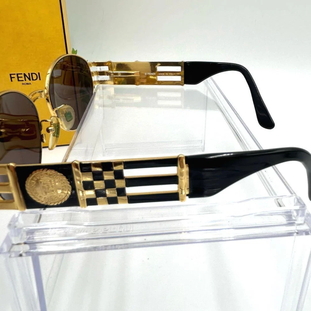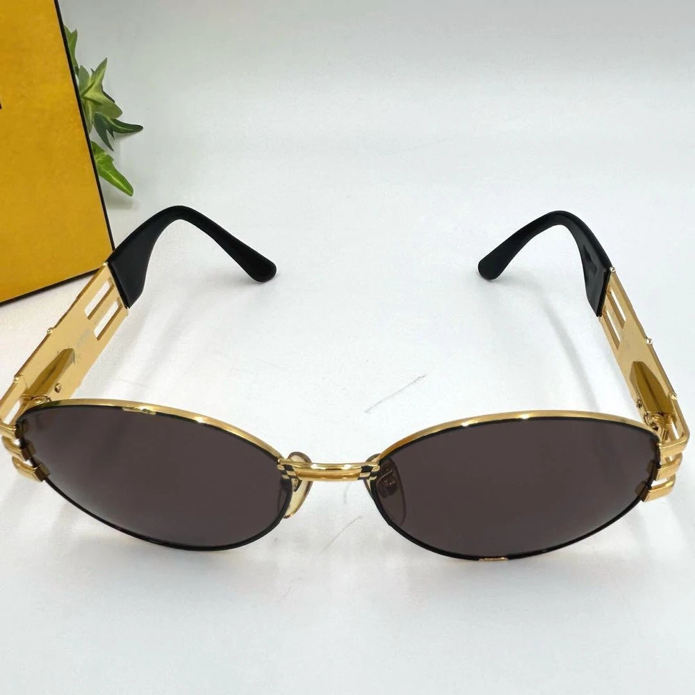 These Fendi sunglasses are a total vibe! The oversized gold and black frame with the checkered logo adds instant glam to any outfit. They feel high-end, fit comfortably, and the vintage look gives off major fashion icon energy. Even with slight wear, they still look flawless—such a steal for designer shades. Perfect for elevating your sunnies game!