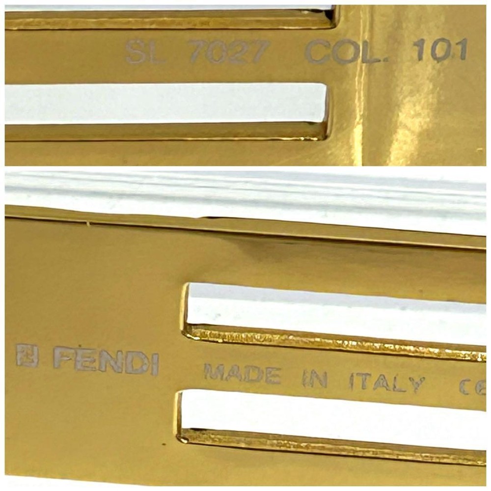Fendi Oversized Oval Sunglasses Gold Black Check Logo Used Features ✔ Elevate your style with these luxurious Fendi Over size d Oval Sunglasses, featuring a sophisticated black and gold design accented with checkered embellishments. Crafted with attention to detail, these vintage sunglasses combine elegance and functionality, making them a versatile accessory for any fashion-forward individual. The sunglasses are in excellent condition , with minor scratches that do not detract from their overall appeal, and have been professionally cleaned and maintained for immediate use. ✔ These Fendi sunglasses are perfect for adding a touch of luxury to your wardrobe. They come with no additional accessories but are verified authentic through expert appraisal, ensuring genuine quality. Whether for casual outings or special occasions, these sunglasses offer both style and durability. ✔ Key Features: ✔ - Brand : Fendi ✔ - Model Number: SL7027 ✔ - Style: Over size d Oval Sunglasses ✔ - Frame Color : Gold and Black ✔ C: Brand : Fendi ✔ C:Model Number: SL7027 ✔ C:Style: Over size d Oval Sunglasses ✔ C: Color : Gold, Black ✔ C:Lens Color : Smoke ✔ C:Frame Material: Metal ✔ C:Frame Width: 14.0 cm ✔ C:Temple Length: 13.5 cm ✔ C:Lens Width: 5.2 cm ✔ C:Lens Height: 4.5 cm ✔ C:Design Features: Checkered Emb Specifications Brand Fendi Country Japan Description Item Title 1Fendi Sunglasses Sl7027 Ff Logo Gold Vintage Payment Supports managed payments Please pay within 5 days after auction is finished. About Us We are located in Japan. It's our pleasure to make you happy by proposing our recommend item. If you have any questions or request about items, please feel free to ask us. International Buyers - Please Note: -Import duties, taxes, and charges are not included in the item price or shipping charges. These charges are the buyer's responsibility. -Please check with your country's customs office to determine what these additional costs will be prior to bidding/buying. -These charges are normally collected by the delivering freight (shipping) company or when you pick the item up - do not confuse them for additional shipping charges. -We do not mark merchandise values below value or mark items as - gifts - The US and International government regulations prohibit such behavior. Thank you for your understanding.