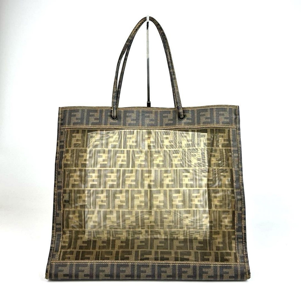 Fendi Shopping Tote Bag Zucca Pattern Mesh Mini Pouch Included Used Description □Items FENDI handbag, shoulder bag, one shoulder All-over FF jacquard Basket bag Sold out Skeleton Large capacity shopping bag Runaway Shopping Tote Size Height 36cm Width 40cm Depth 12cm Shoulder cm〜cm Handle: 49 cm Pouch Height 12cm Width 16cm Gusset 1cm □ Status Although it is a used item, there are no noticeable scratches or stains and it is in good condition. It is still in good condition for use. □Accessories Body only □ Color Brown □Material Mesh PVC Leather Product condition There is no noticeable scratches or dirt 【 Shipping 】 DHL. ( 4-10 days to arrival) I can not responsible for normal SAL shipping loss or damage. For expensive items we recommend EMS Depending on the size and weight after packing the items, The shipping method may change depending on your location. Please contact us for additional charges Shipping is only available to the address registered in Paypal. Please note that any address not registered in Paypal is not acceptable to ship. Shipping is available from Monday to Friday. Weekends are not available because post office is closed. 【Return】 No Return 【International Buyers - Please Note: 】 Import duties, taxes, and charges are not included in the item price or shipping cost. These charges are the buyer's responsibility. Please check with your country's customs office to determine what these additional costs will be prior to bidding or buying.