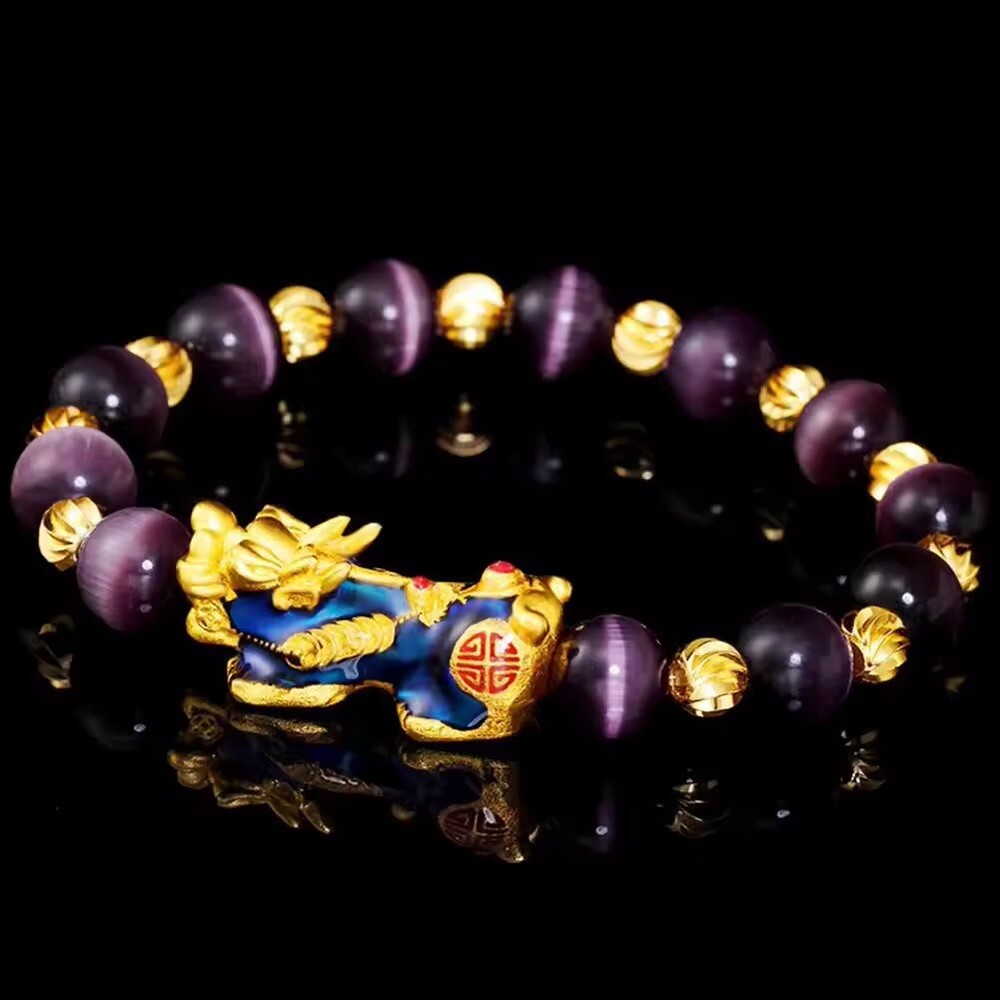 Feng Shui Amethyst PiXiu Bracelet for Wealth Luck Jewelry Gift