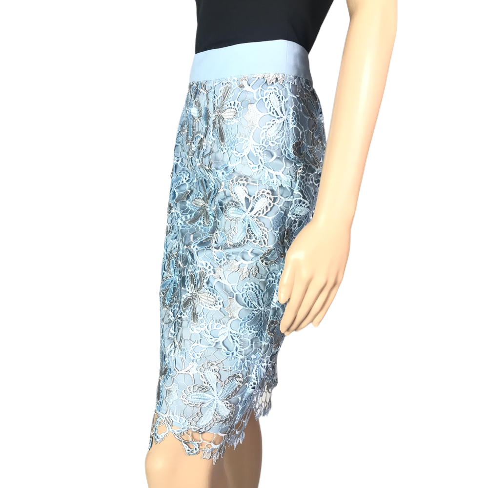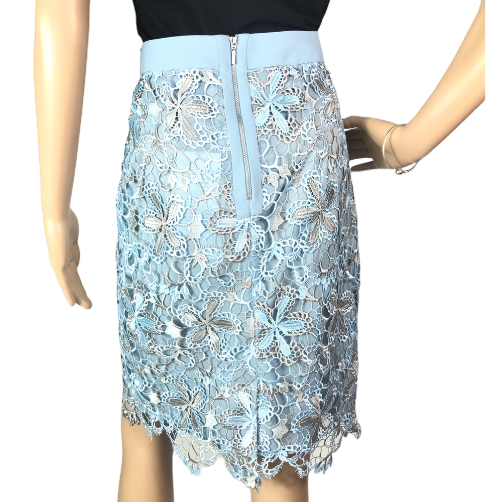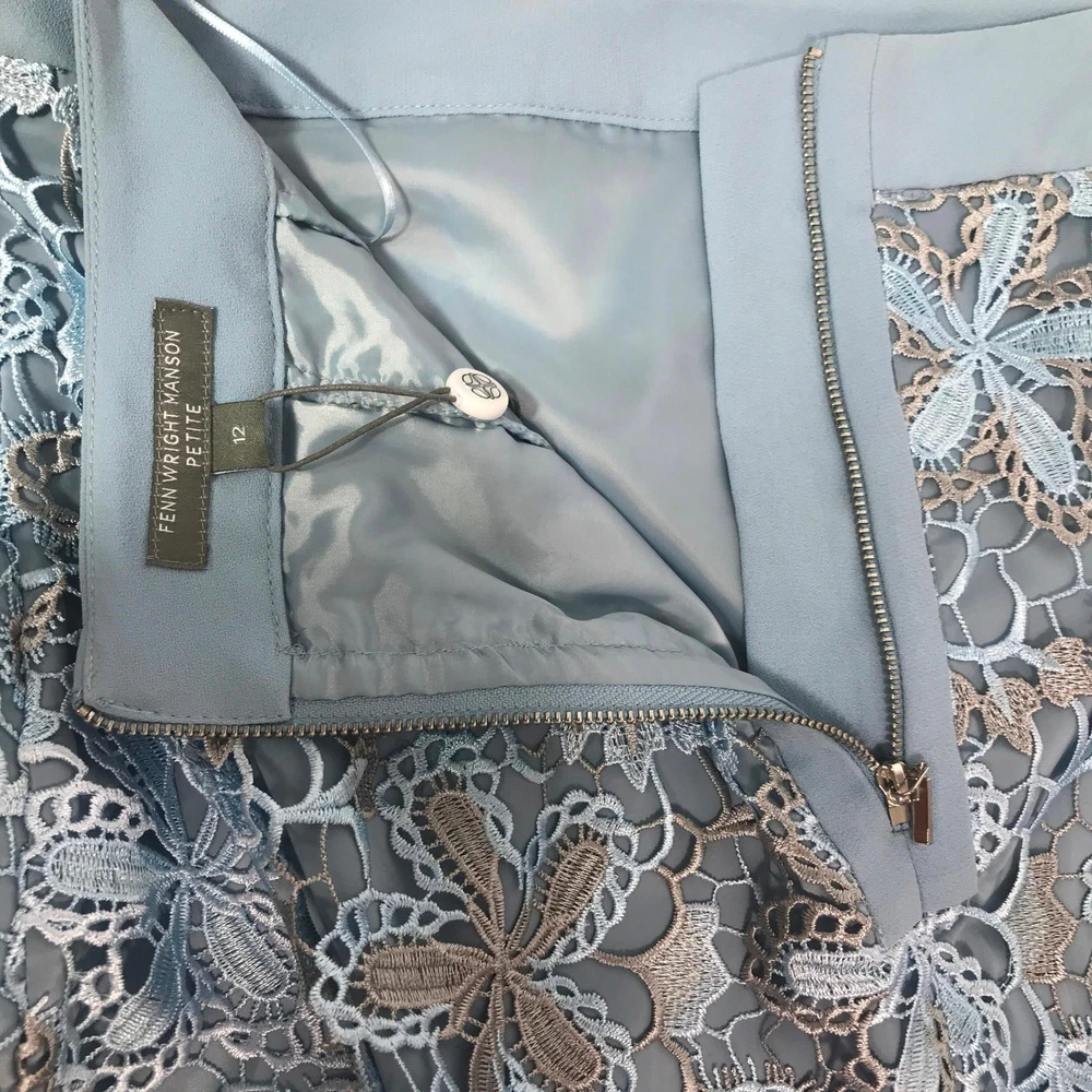 Fenn Wright Manson Blue Floral Lace Pencil Skirt Size 12 Petite Embroidered Straight Fit