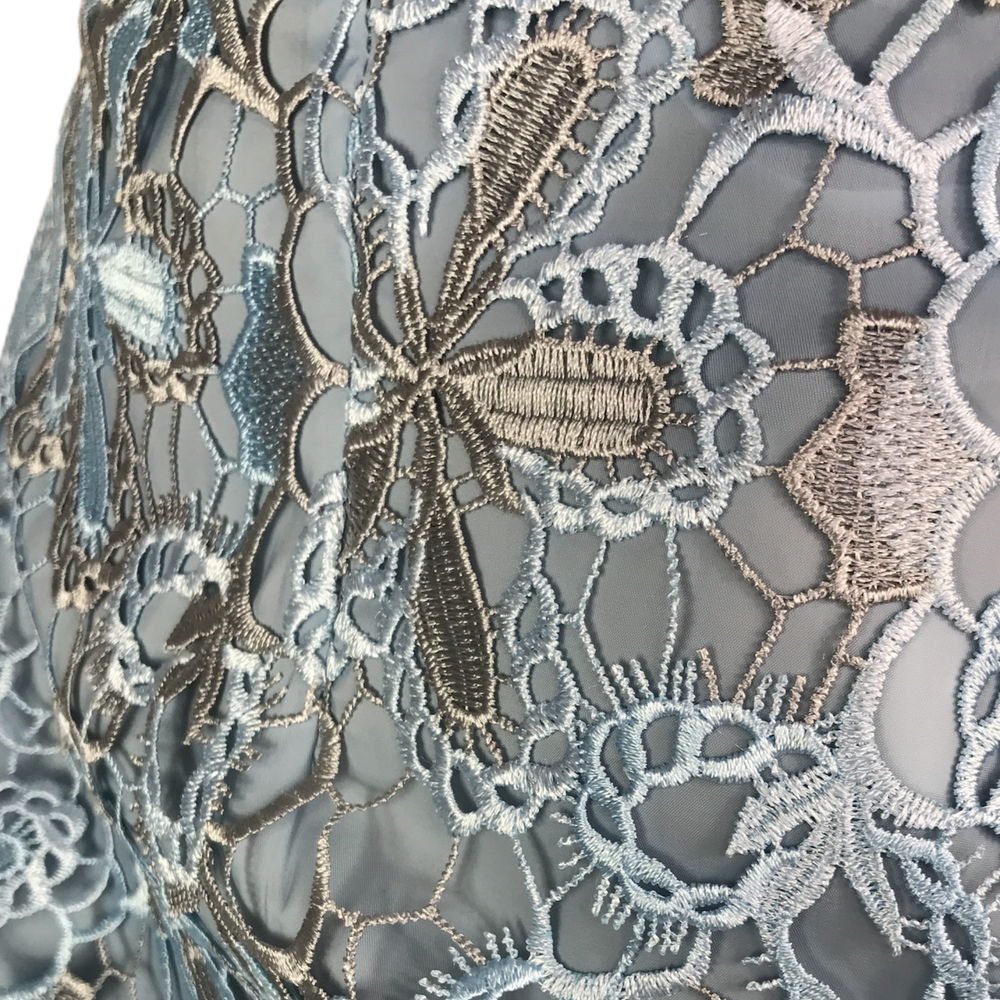 Occasion: Party/Cocktail, Wedding, Workwear Colour: Blue Brand: Fenn Wright Manson Season: Spring, Summer Fabric Type: Lace Garment Care: Dry Clean Only Type: Skirt Pattern: Floral Accents: Embroidered, Lace, Zip Style: Straight & Pencil Closure: Zip Material: 100% Polyester LINING 51% Polyester 49% Elastomultiester Skirt Length: Knee Length Department: Women Size: 12 Size Type: Petites