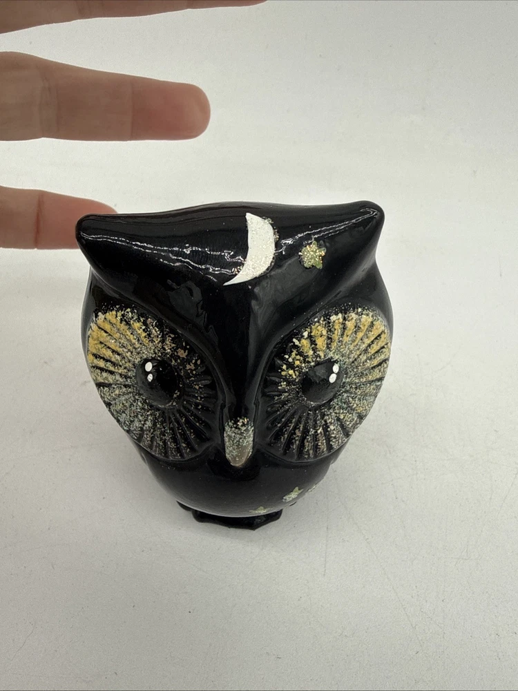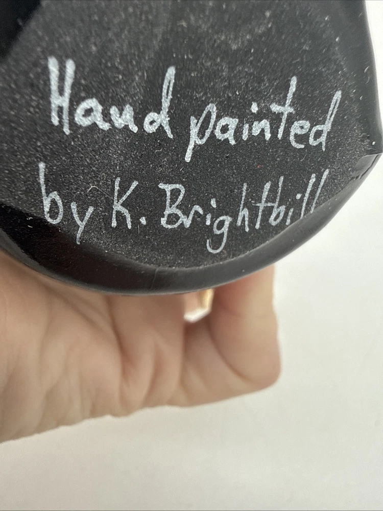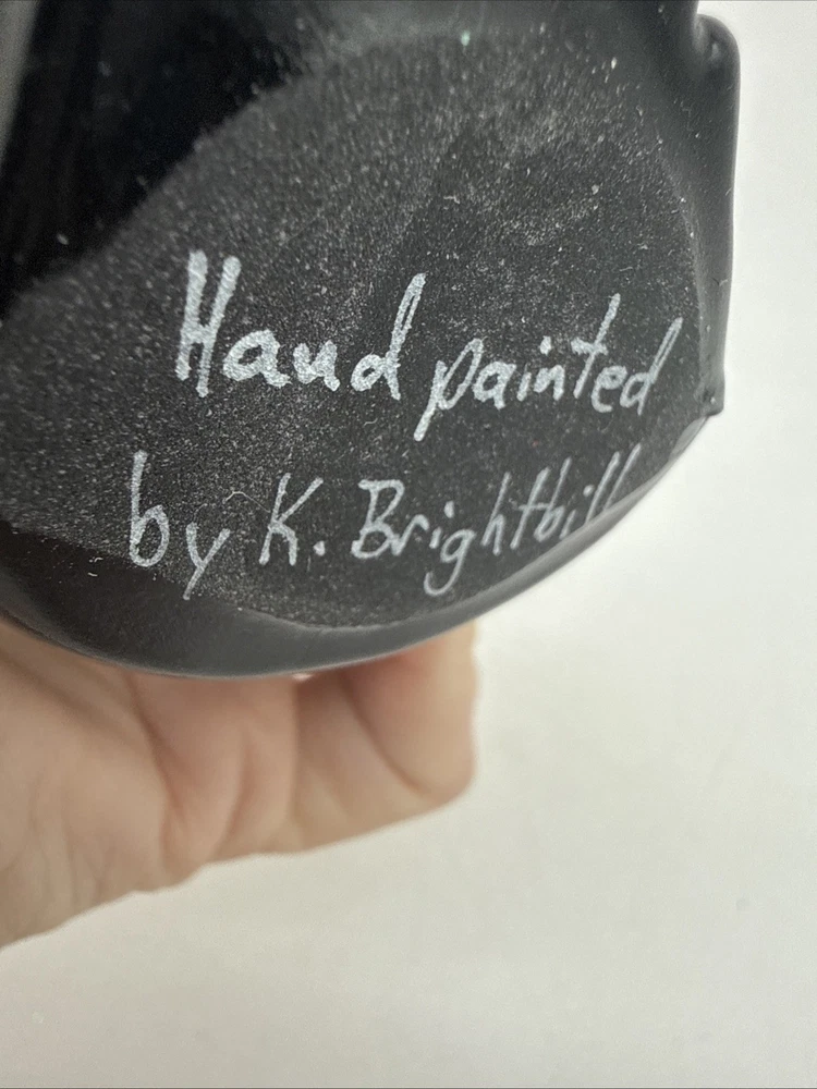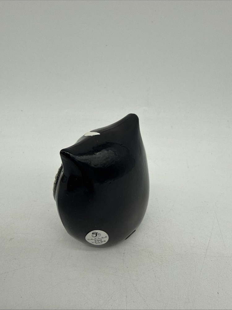 The Fenton 2005 Hand Painted Black Hootie Owl Nightime Moon & Stars Figurine is a beautifully crafted piece of art glass featuring a hand-painted owl design on a black glass base. This unique figurine captures the essence of the nightime moon and stars, adding a touch of whimsy and charm to any decor. The Fenton brand is known for its exquisite craftsmanship and attention to detail, making this piece a special addition to any collection of decorative pottery and glassware.