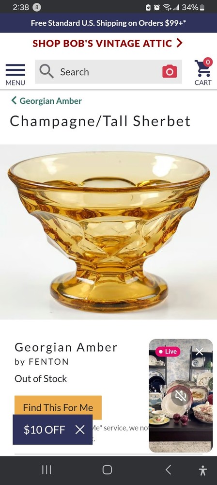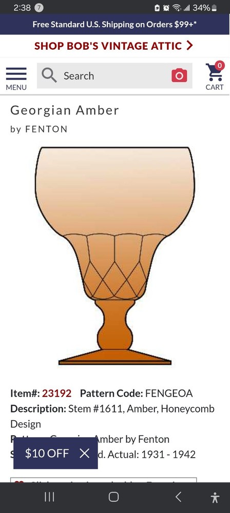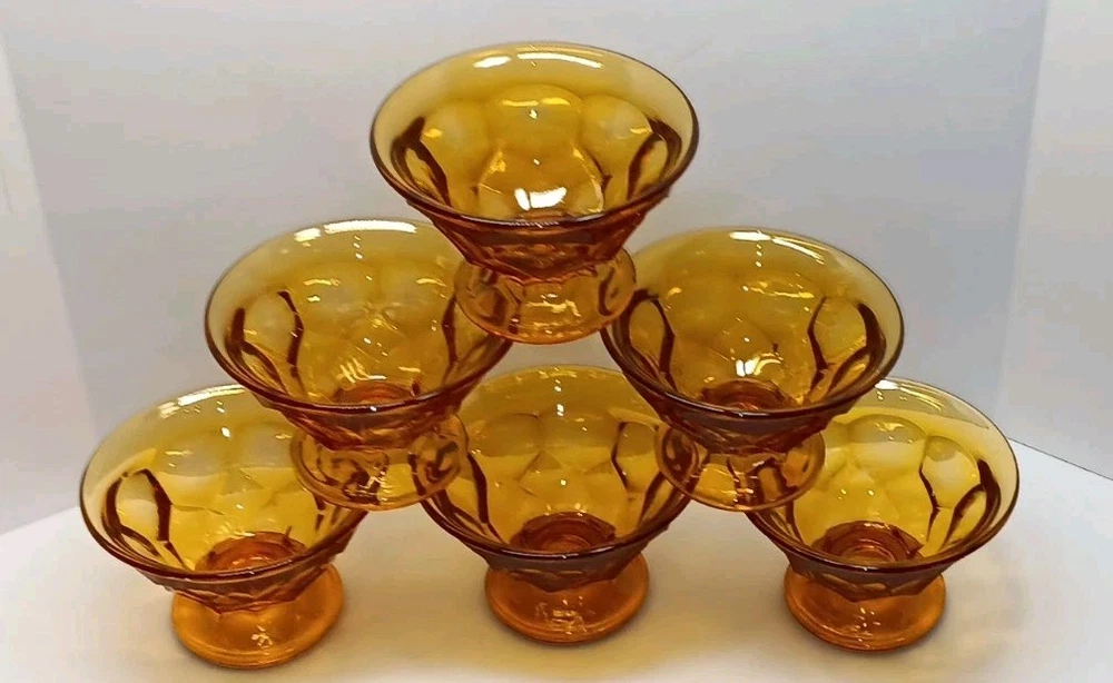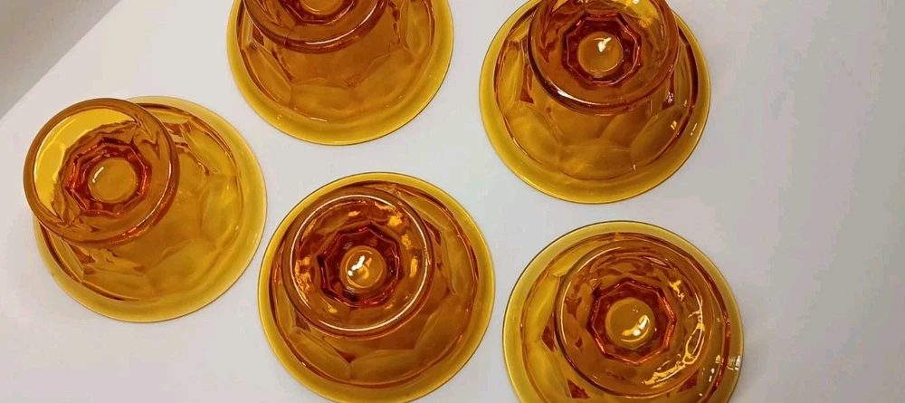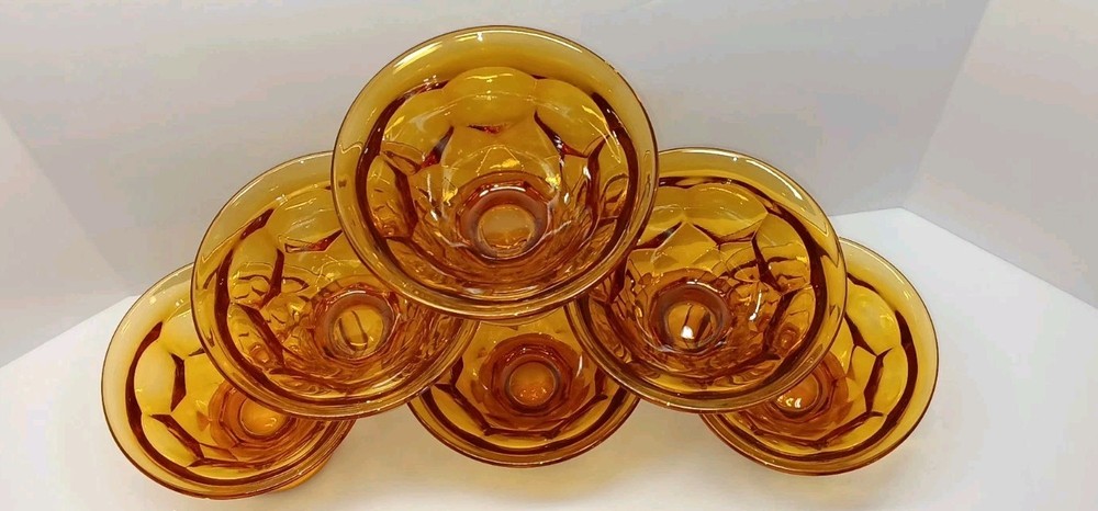 Production Technique: Fused Glass Backstamp: Unmarked, No Sticker Year Manufactured: 1931 Finish: Glossy Capacity: 4 oz. Origin: America Theme: Fenton Glass Department: Unisex Adults Handmade: Yes Country/Region of Manufacture: United States Style: Georgian Brand: Fenton UPC: Does not apply Time Period Manufactured: 1930-1939 Type: Champagne/Sherbet Production Style: Pressed Glass Vintage: Yes Shape: Geometric Pattern: Georgian Amber by Fenton Color: Amber Features: Decorative, Stem #1611, Honey Comb Design, 4 oz. Capacity, Flared Rim Item Weight: 2 lbs. 14 ozs. Original/Licensed Reproduction: Original Product Line: Georgian MPN: unknown Material: Glass gtin13: Does not apply Number of Items in Set: Six-Piece Care Instructions: Hand Wash Only Item Height: 2 5/8" Tall Occasion: All Occasions