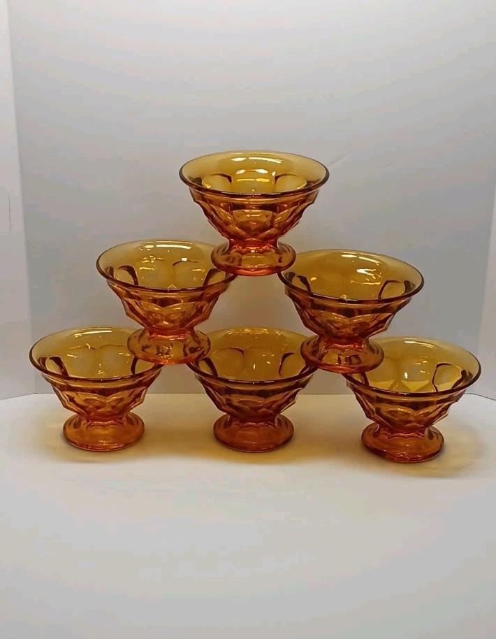 Fenton 6 Georgian Amber Champagne Tall Sherbet Glasses Honey Comb Design