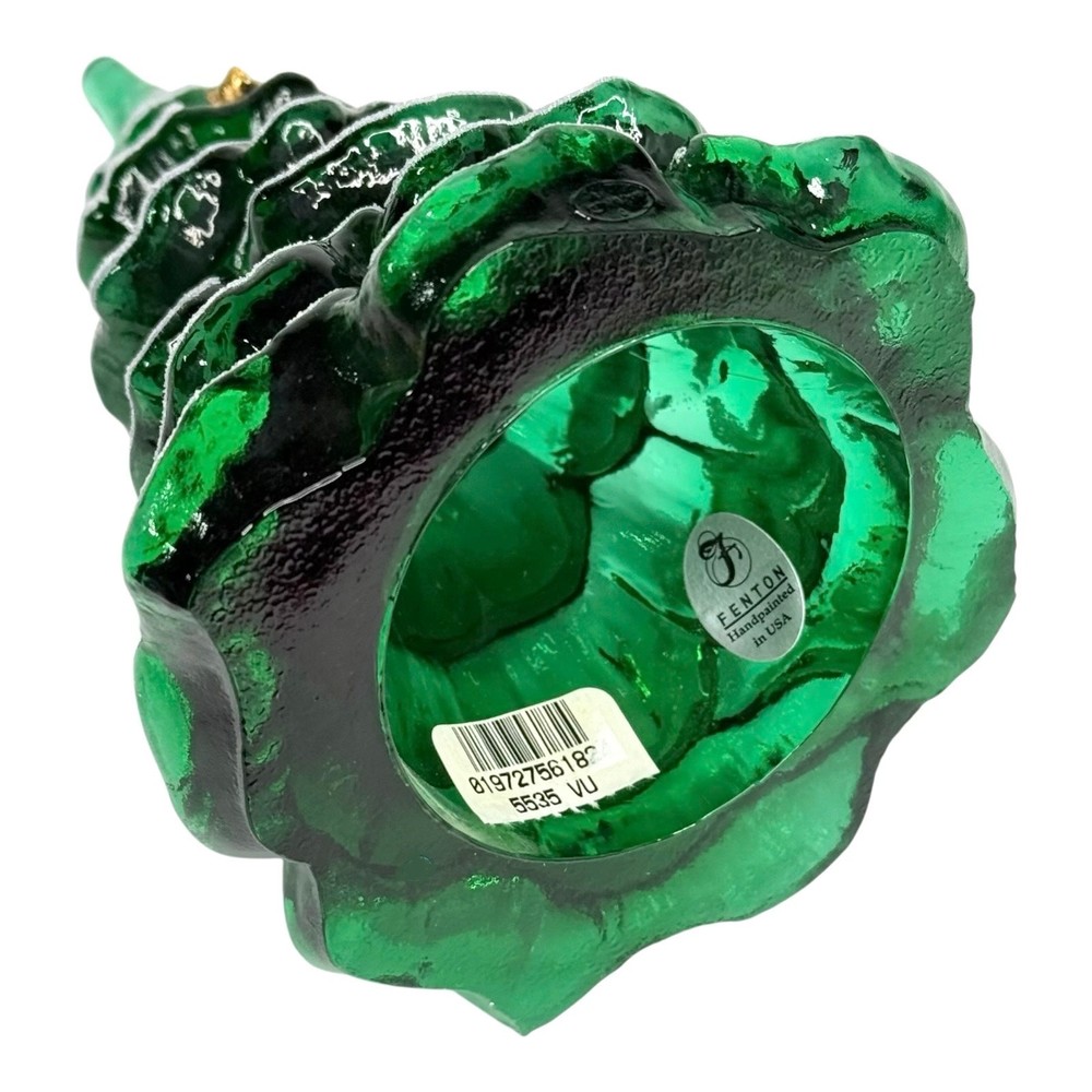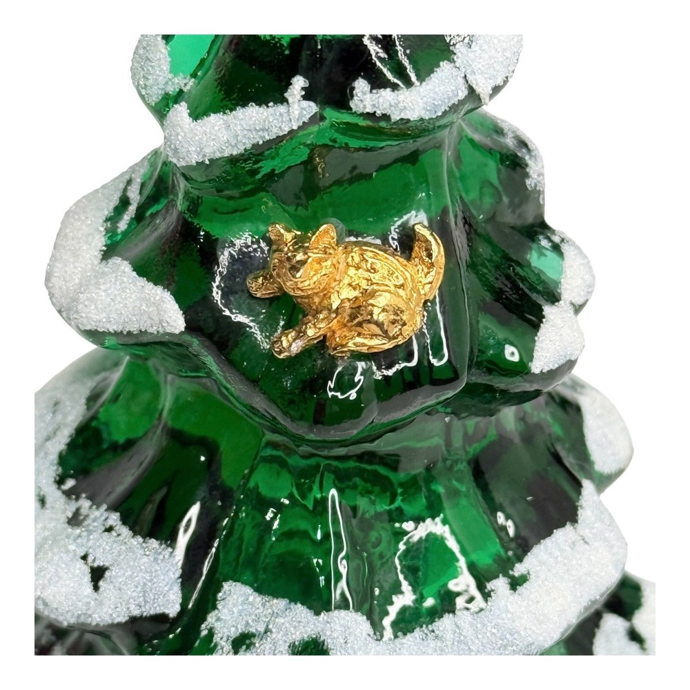 You Are Looking To Buy: Fenton Large CHRISTMAS TREE 6.5" FIGURINE Large Green Glass Snow Frosted Pine Tree with Gold Kitty Cat Nestled In Branches - NEW Condition With Fenton Tag & Logo On Base! Features: This Fenton Green Glass Snow Frosted Tree With Gold Kitty Cat Will Add Elegance To Any Table! Features Iridescent Green Fenton Glass Snow Frosted Tree Figurine With Gold Kitty Cat Nestled In Branches Size: Large 6.5" Tall NEW Condition With Fenton Tag and Logo On Base! Great Gift for Him or Her - or For Yourself! Buy In Confidence From 100% Positive Feedback Seller Thank You! We will ship your order immediately upon receipt of payment. For your convenience, we do combine shipping and often discounts on multiple item orders to same address.