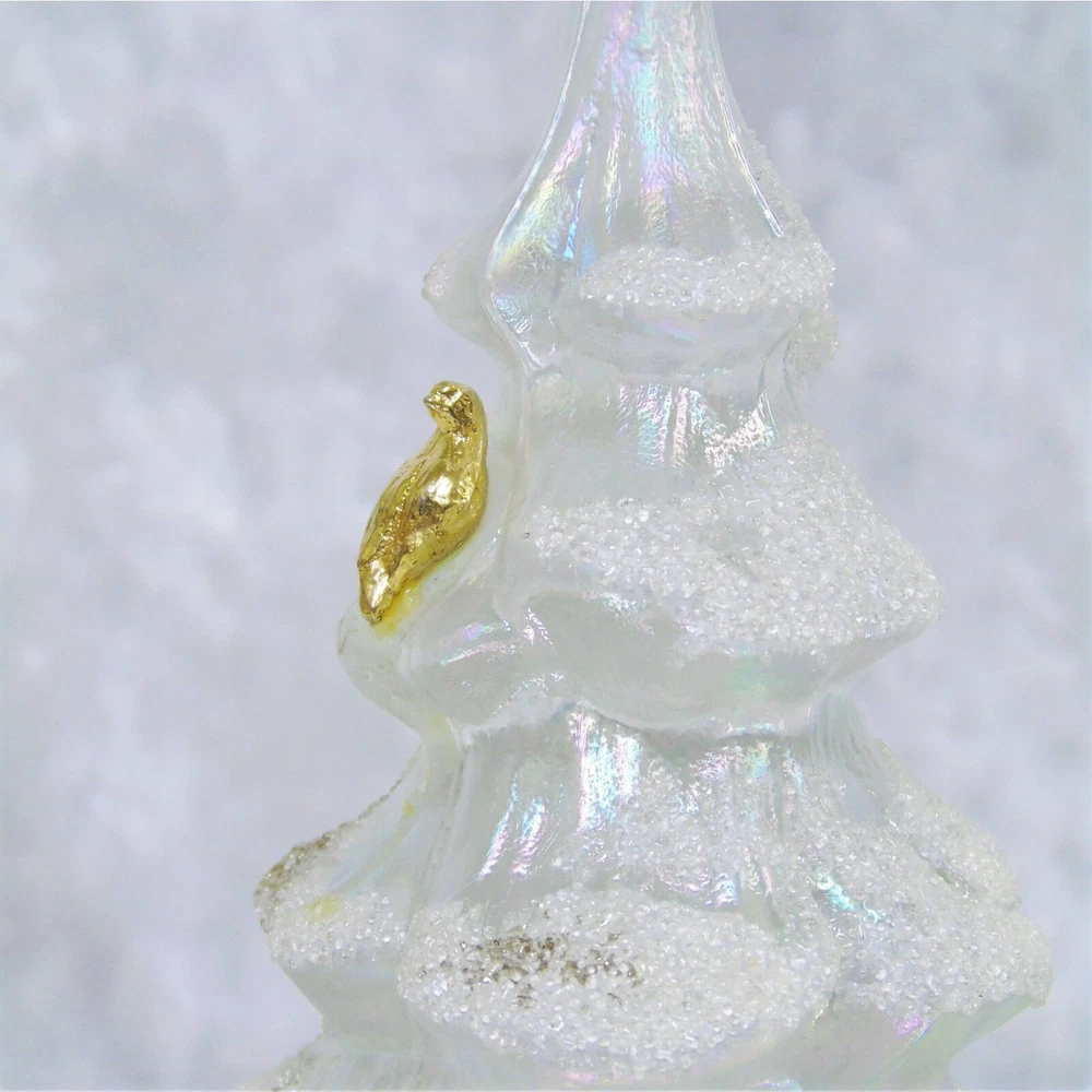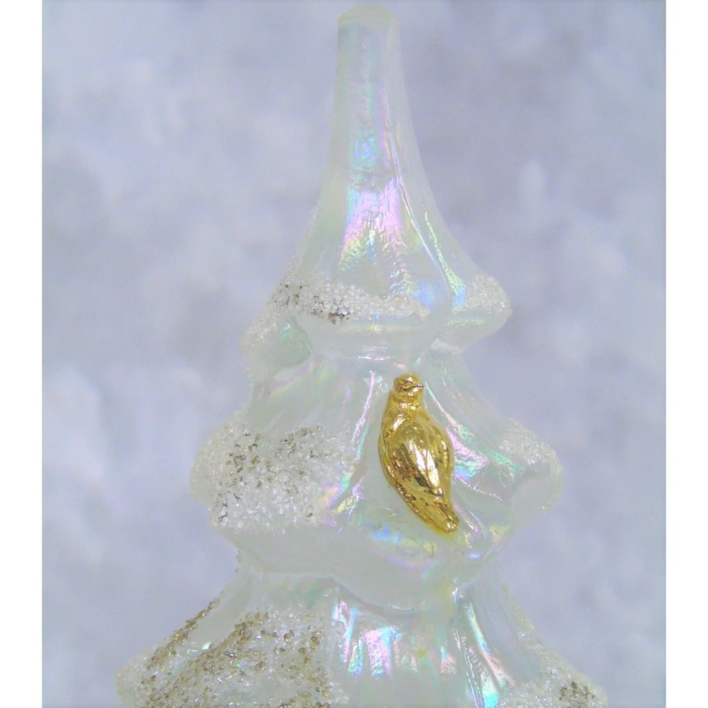 You Are Looking To Buy: Vintage Fenton Large CHRISTMAS TREE 6.5" Iridescent White Gold Snow Frosted With Gold Partridge Bird - NEW Condition! Features: This Fenton Glass White Iridescent Snow & Gold Frosted Tree with 22k Gold Partridge Bird Will Add Elegance To Any Table! Iridescent Fenton Glass With Frosted Detail & 22k Gold Partridge Bird Perched Near Top Size: Large 6.5" Tall NEW Condition! Great Gift for Her - or For Yourself! Buy In Confidence From 100% Positive Feedback Seller Thank You! We will ship your order immediately upon receipt of payment. For your convenience, we do combine shipping and often discounts on multiple item orders to same address. mi