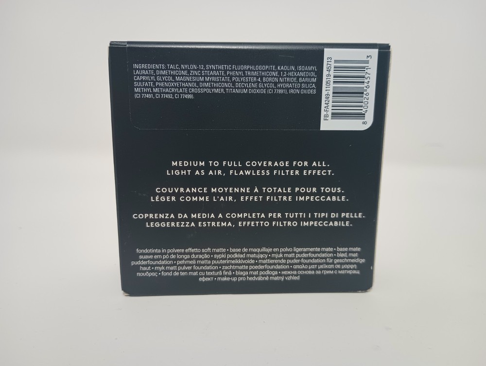 gtin13:840026645713Features:Long Lasting, VeganDepartment:WomenPeriod After Opening (PAO):12MUPC:840026645713Volume:0.32 ozEffect:MatteBrand:Fenty BeautyCountry of Origin:ItalyFormulation:Pressed PowderModel:Fenty Beauty ProSize:StandardProduct Line:Rihanna FENTY BEAUTY Pro Filt'rType:FoundationCoverage:Medium to Full