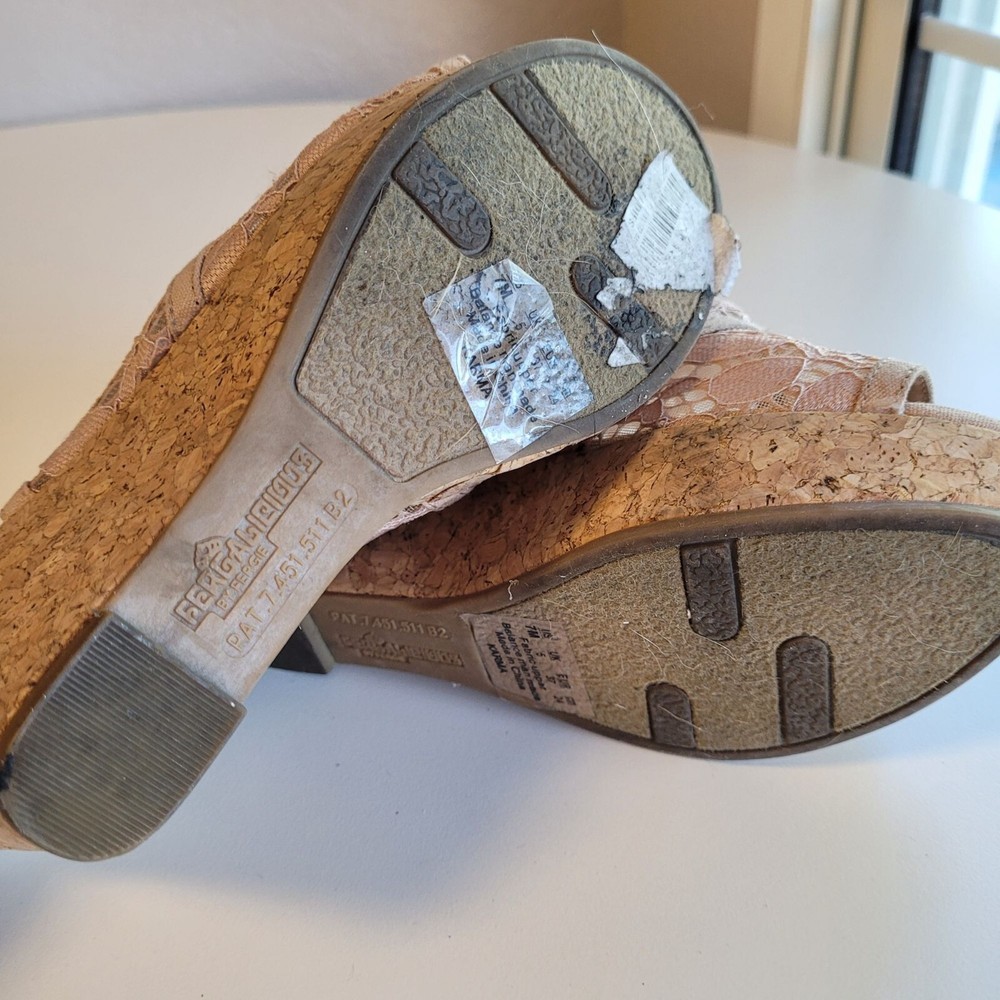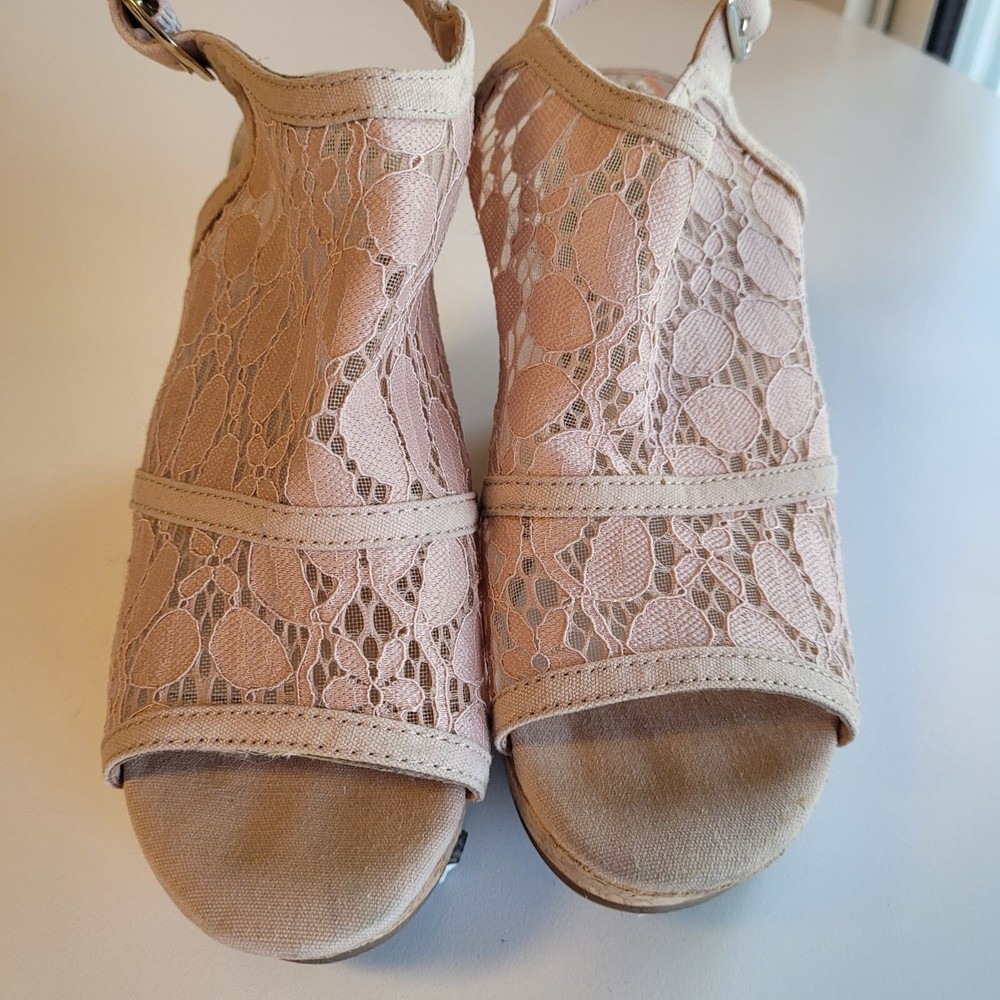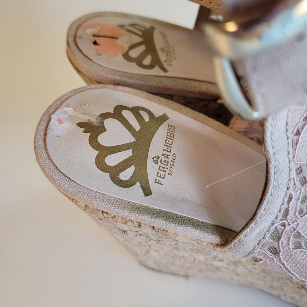 Fergalicious Women's Size 7 Tan Lace Peep Toe Platform Sandals Wedge High Heels Pre-owned in good conditions