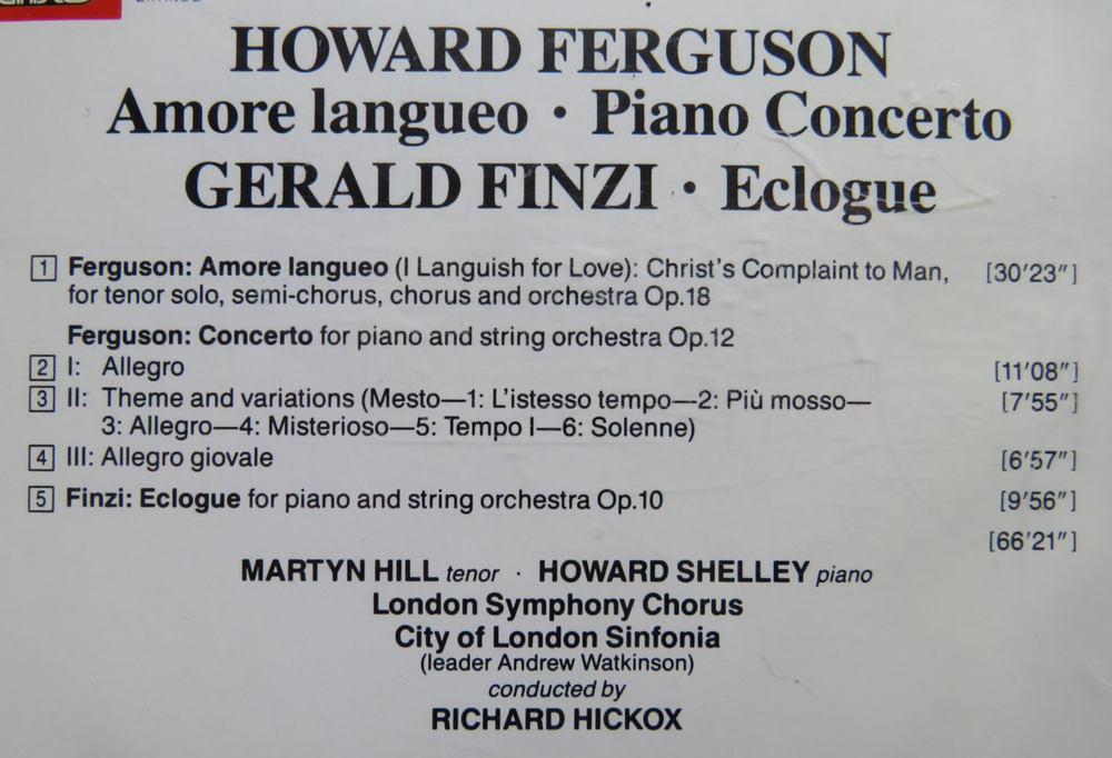 Ferguson Amore Langueo Piano Finzi Ecologue Hickox CLS 1987 EMI CD