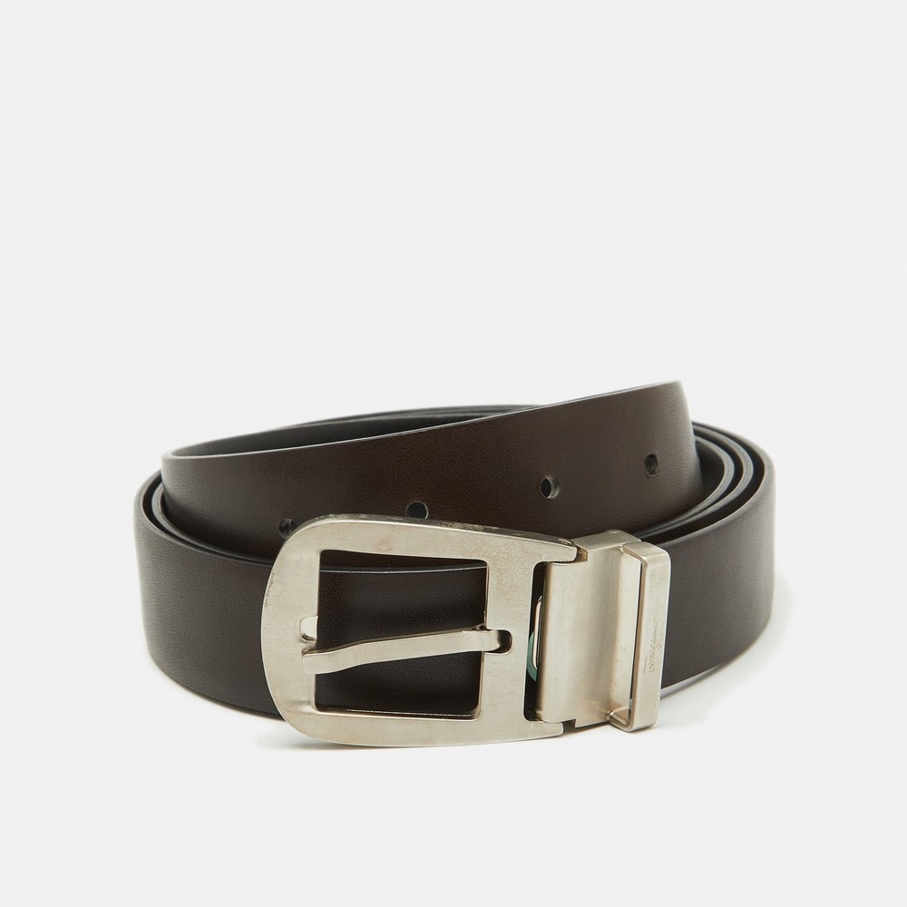 Why choose one color when you can have two? This reversible belt offers effortless versatility, featuring premium leather on both sides and a sleek, easy to switch buckle.Certified by The Luxury Closet - This item has gone through a detailed authentication process overseen by our experts. We offer a lifetime guarantee of authenticity on all our items. Import duties, taxes and charges are not included in the item price. These charges are the buyers responsibility. Please check with your country’s customs office to determine what these additional cost will be prior to buying. Our eBay Store About Us Contact Us Add to Favorite Sellers Salvatore Ferragamo Black/Dark Brown Leather Cut to Size Buckle Belt $169.4 Why choose one color when you can have two? This reversible belt offers effortless versatility, featuring premium leather on both sides and a sleek, easy to switch buckle. Product Details Brand Color Black Dimensions Height: 3 cm, Length: 120 cm Material Leather Size Outsole Width Outsole Length Heel Height Includes The Luxury Closet Packaging Certified by The Luxury Closet This item has gone through a detailed authentication process overseen by our experts. We offer a lifetime guarantee of authenticity on all our items. How We Check The in-house team of experts at The Luxury Closet is highly trained to verify the authenticity and the condition of the luxury products. They ensure that only 100% authentic items are put on sale.The evaluation process is unique with its own mix of assessment criteria and differs according to the category. Each item is evaluated based on the following combination of hallmarks, hardware, stitching, symmetry, material, craftsmanship, stamping, codes, hologram stickers, and packaging. Our authenticators also check if the items have been modified or amended (e.g., aftermarket diamonds, replaced batteries, repaired bags, etc.) International Buyers Import duties, taxes and charges are not included in the item price. These charges are the buyers responsibility. Please check with your country’s customs office to determine what these additional cost will be prior to buying.