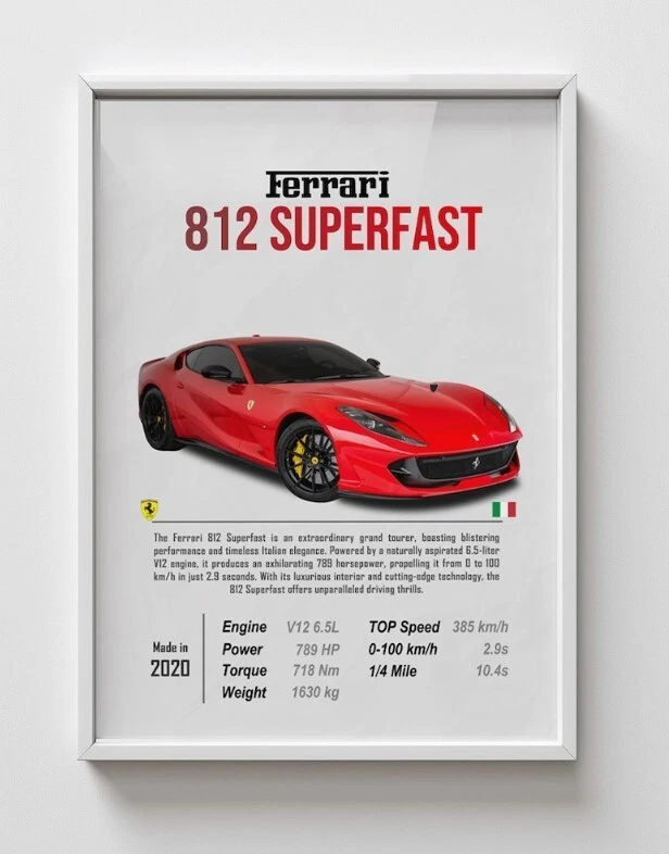 Ferrari 812 Superfast Poster, Ferrari Poster, Car Poster, Car Posters