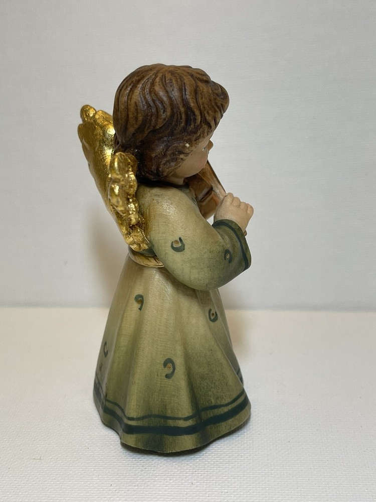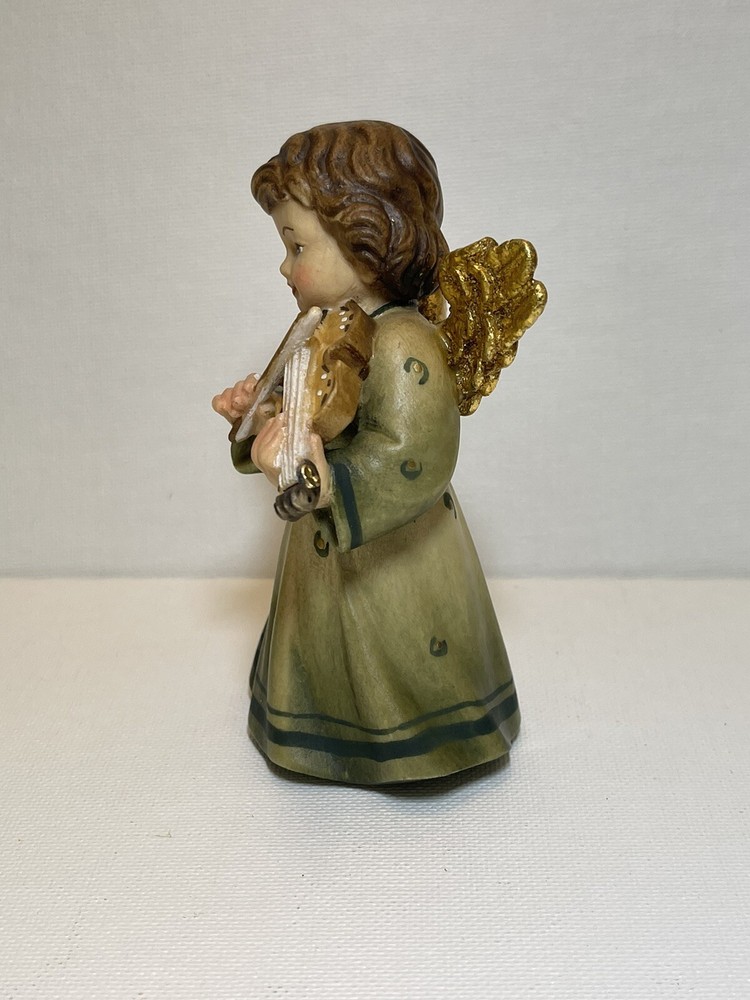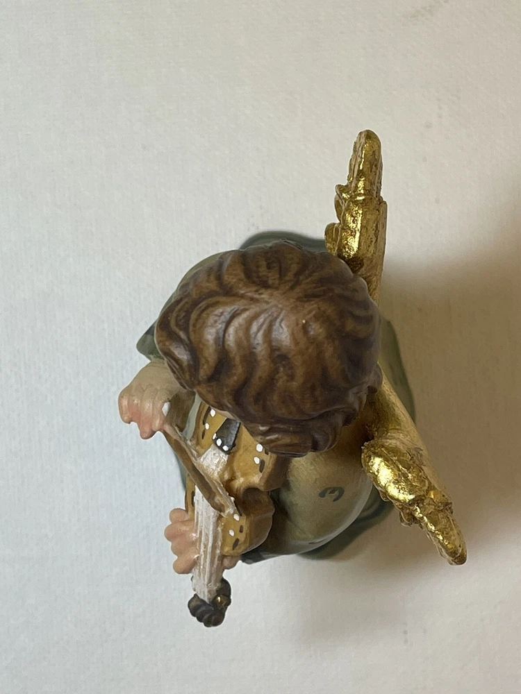 Ferrari & Arrighetti Small Wooden Angel Fiqurine Playing a Violin Hand Painted. This piece is in great condition. Finely painted. There are only two tiny spots that are missing a tiny speck of paint. If you zoom in you should be able to see one on the right side of the hair and one on the hem in back. She is a smidge over 4 inches tall. Please look closely at the photos before bidding, as they are considered to be part of the description.