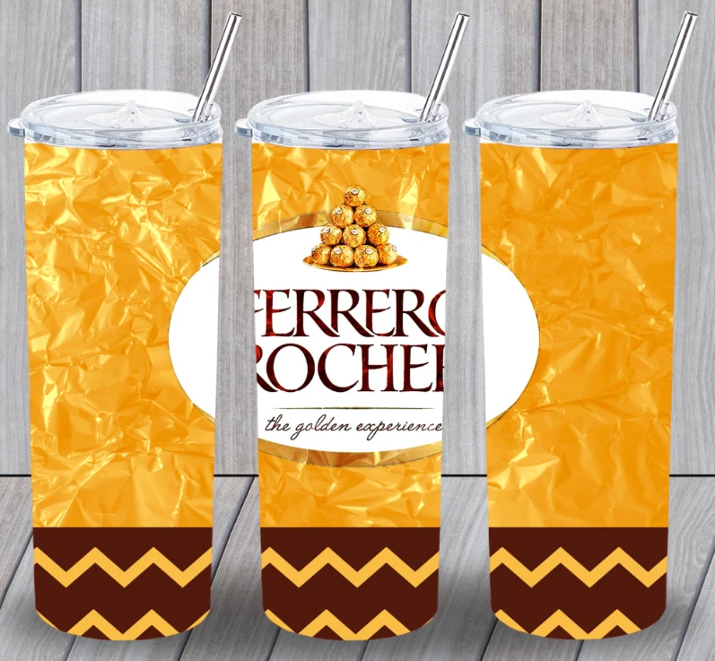 Ferrero Rocher Candy Multicolor 20oz Insulated Tumbler Lid Plastic Straw New