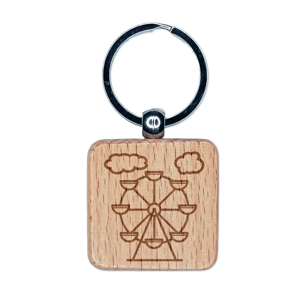 Ferris Wheel Carnival Ride Engraved Wood Square Keychain Tag Charm