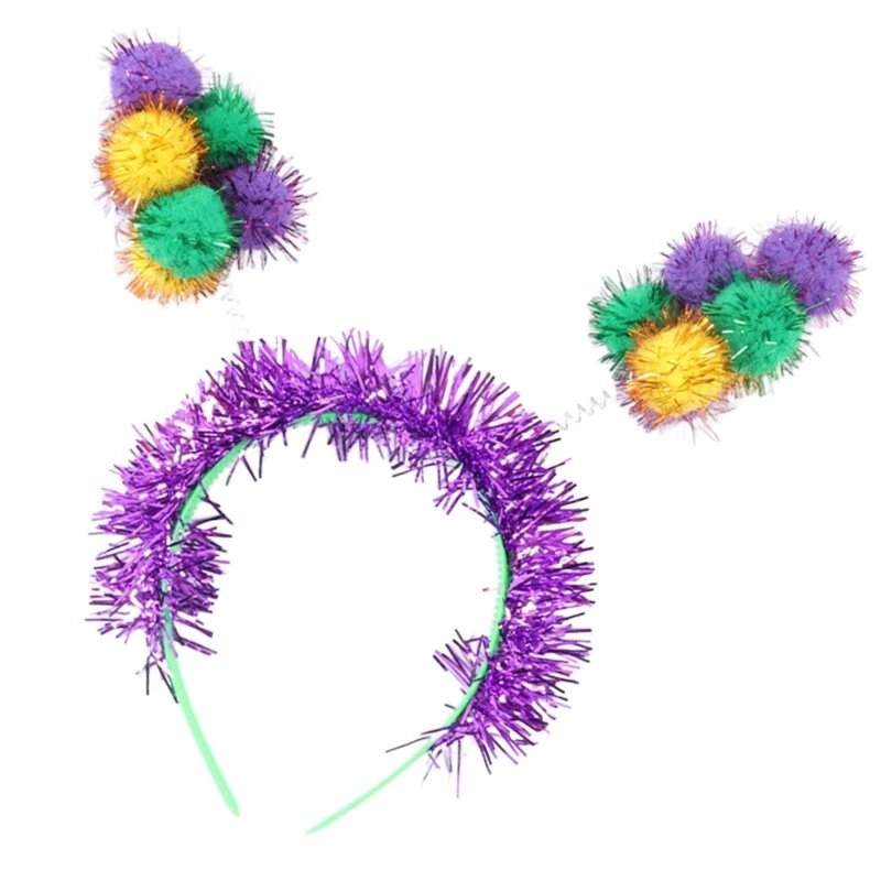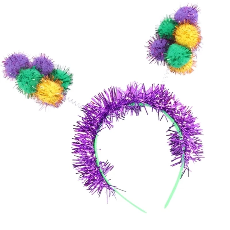 Features: Elevating your styles with our pompoms headband, designs to add a touch of charm and enhances to any outfit effortlessly. Use selected mixed materials, this elastic headband suited comfortably on various head size without causing pressure or discomfort. Great for women of all ages, especially fashion forward and individualistic girls searching a unique accessory. Perfect for daily wear, parties, and festival event, this headband helps you easily achieve a sweet and stylish lookings. This multiuse hair accessory is great in your collection, offering both comfortable and aesthetic for various occasion. Specifications: Product Dimension: As picture shown Component: Plastic, Fabric Type Option: 2 optional type as pictures shown Package Includes: 1PC Mardi Gras Party Headband note: Please allow 1-2cm errors due to manual measurement. Due to the differences between different monitors, the picture may not reflect the actual color of the item.