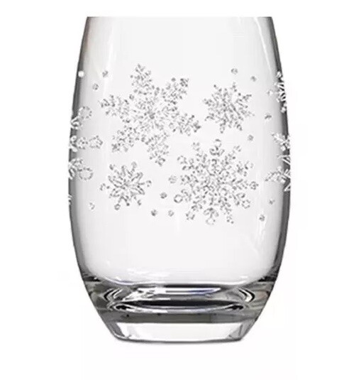 Elevate your holiday cheer with this stunning stemless wine glass featuring a festive design of glittering snowflakes. Perfect for any occasion, whether it's a cozy night in or a holiday party with friends. The round shape and clear glass material add a touch of elegance to your table setting. Crafted in China and made of high-quality glass, this wine glass is durable and easy to clean. It holds 15.5 oz. and is perfect for a single serving. The glassware type is a wine glass, and the service is for one. The design is classic with a holiday theme, and the pattern is novelty. Personalization is not available for this item. Add this gorgeous stemless wine glass to your collection and enjoy your favorite wine in style.
