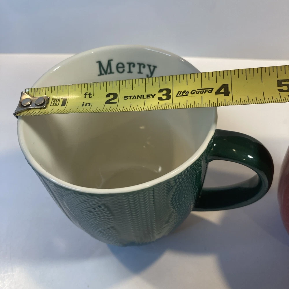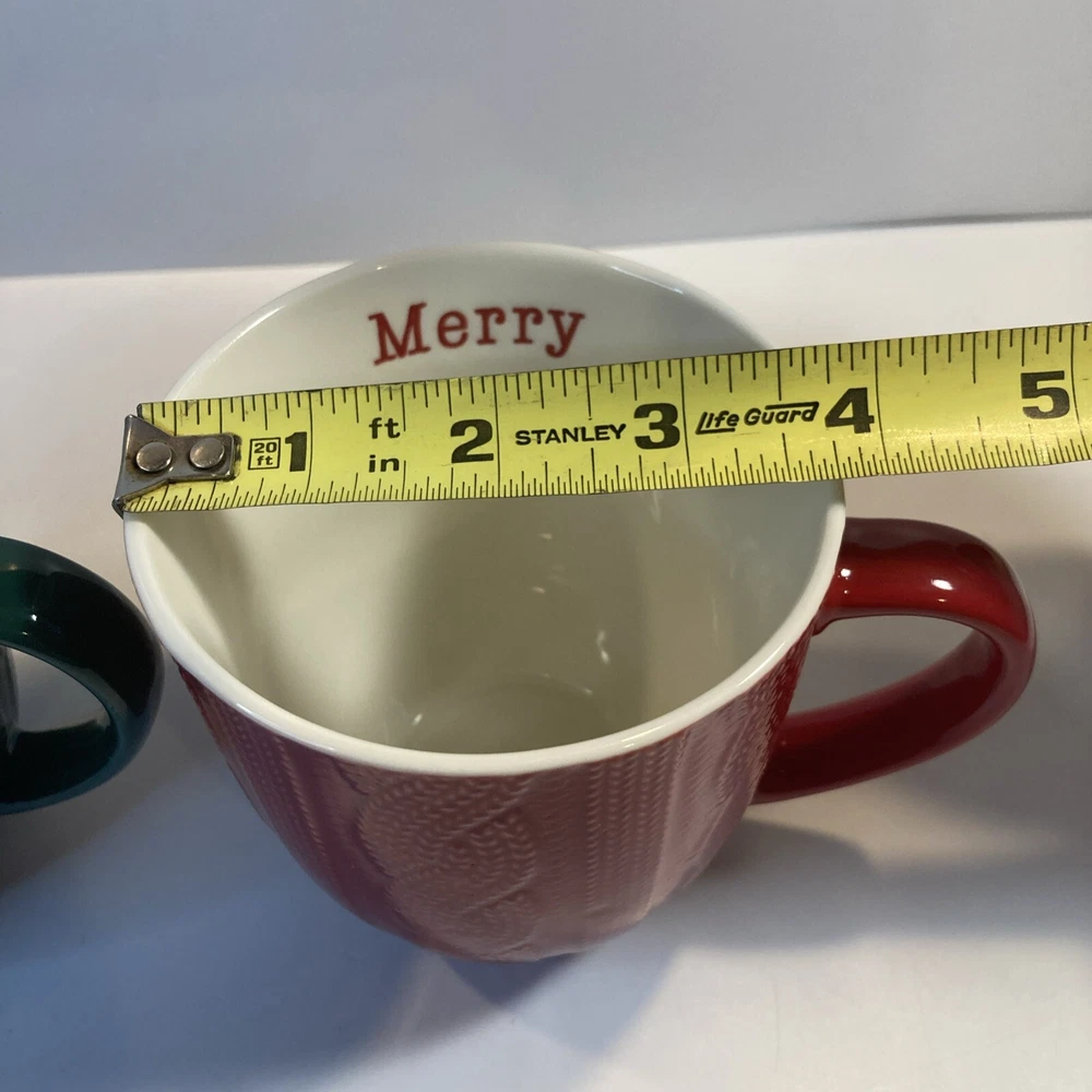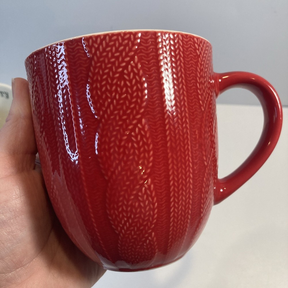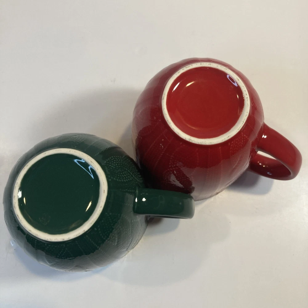 Department:Teens, Unisex AdultsBrand:UnbrandedSize:MediumOccasion:ChristmasTheme:SeasonalBeverage Type:Hot or ColdSet Includes:Coffee MugHandmade:NoColor:RedService For:2Pattern:All-OverShape:RoundMaterial:Ceramic & PorcelainNumber of Items in Set:Two-PieceType:MugDesign:Embossed, Etched, Wavy Line