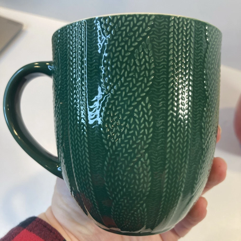 HomeFestive 16oz Christmas Sweater Mug Set - Red & Green Textured Design for Coffee or Tea