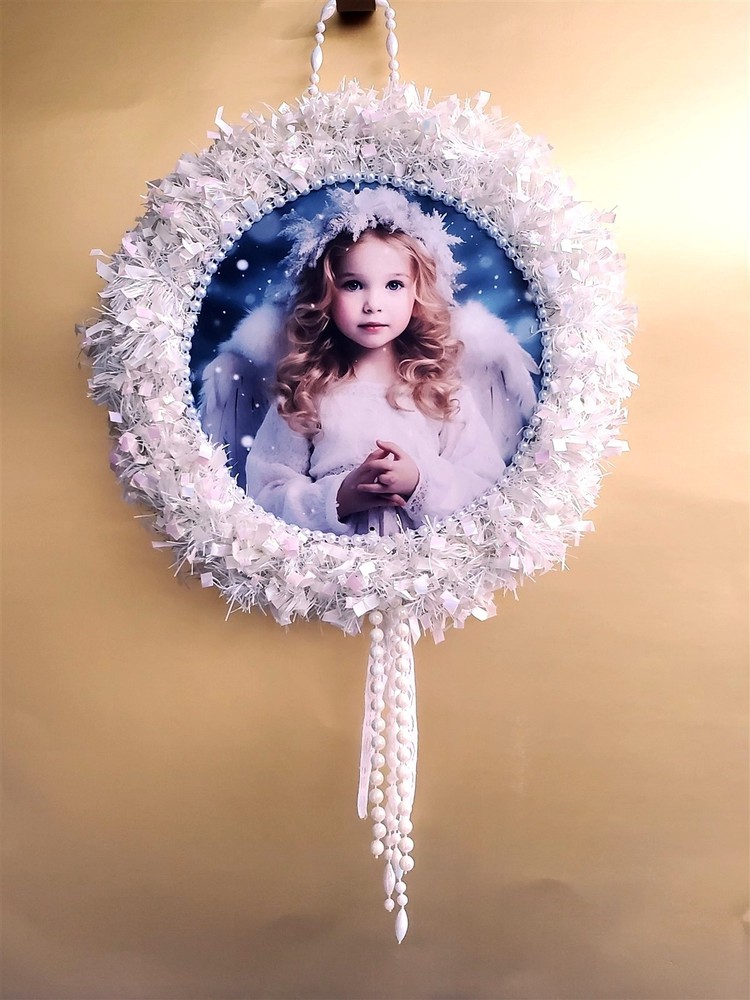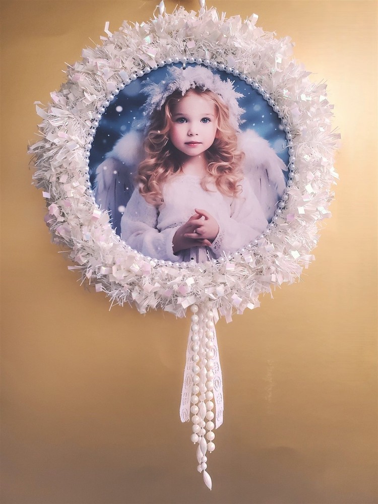 This stunning angel wreath is absolutely breathtaking! The delicate lace, shimmering garland, and faux pearls add such a magical touch. The blue and white color scheme is so elegant, perfect for holiday decor. I love the intricate details—it's clearly handmade with care. The metal angel sign is beautiful, and the bead hanger makes it easy to display. It looks gorgeous on my front door, instantly adding Christmas charm. Unique, charming, and worth every penny! Highly recommend this lovely piece—it’s a true showstopper.