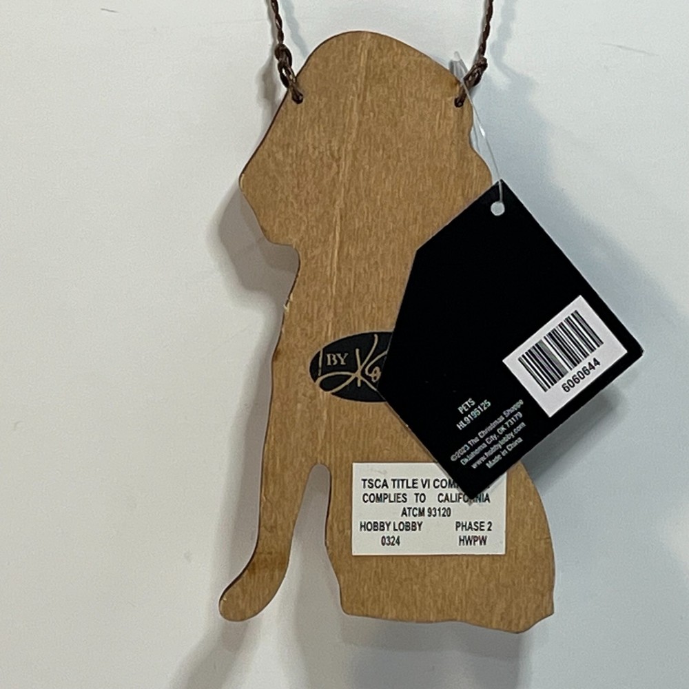 Beagle Dog Wooden Christmas Ornament He is wearing a plaid scarf and a santa hat Measures 5 1/4" tall x 3" wide Comes new with tag