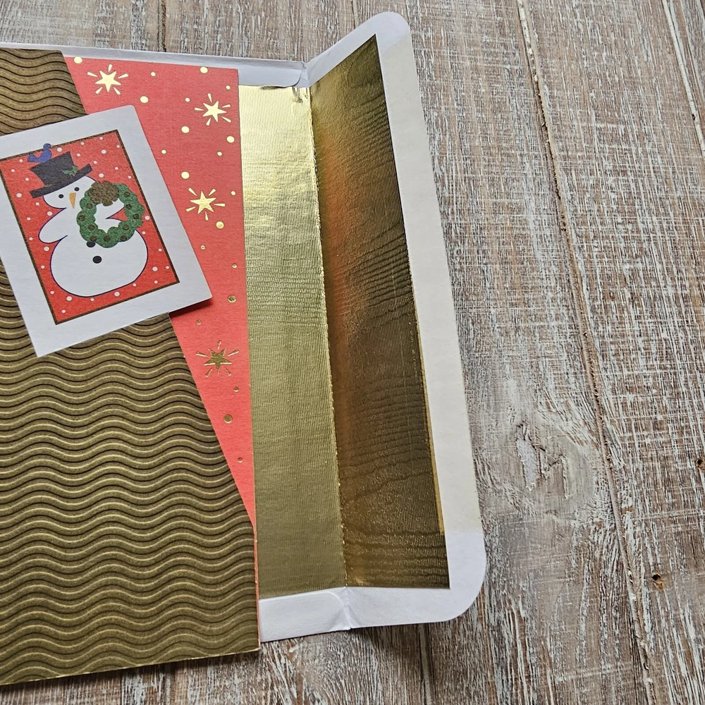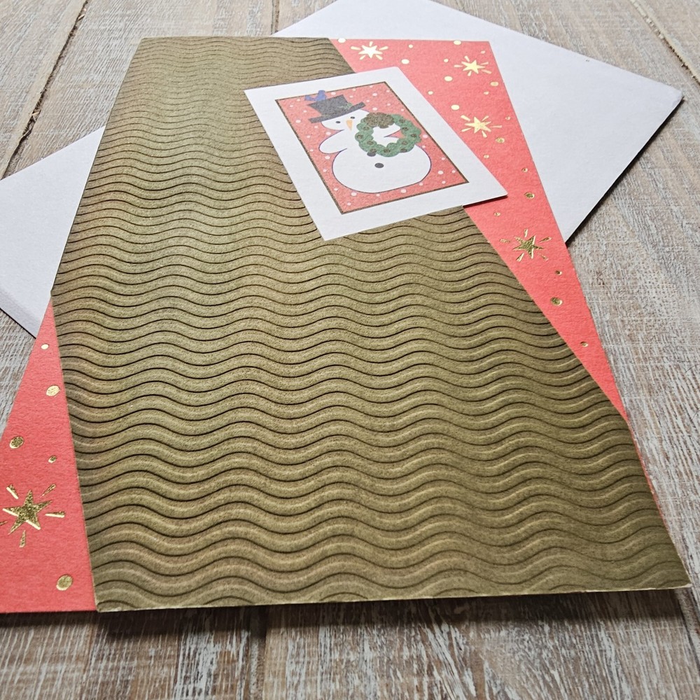 Christmas Greeting Card 6x8 Textured Brown Gold Stars Snowman Plus Mark Full Size 5.5 x 8 inch card with matching envelope Condition: new Search thousands of cards for all occasions in our eBay Store. **This items ships with limited tracking via USPS First Class.** **The standard time is 5-7 business days for delivery but it may take up to 10 days.**