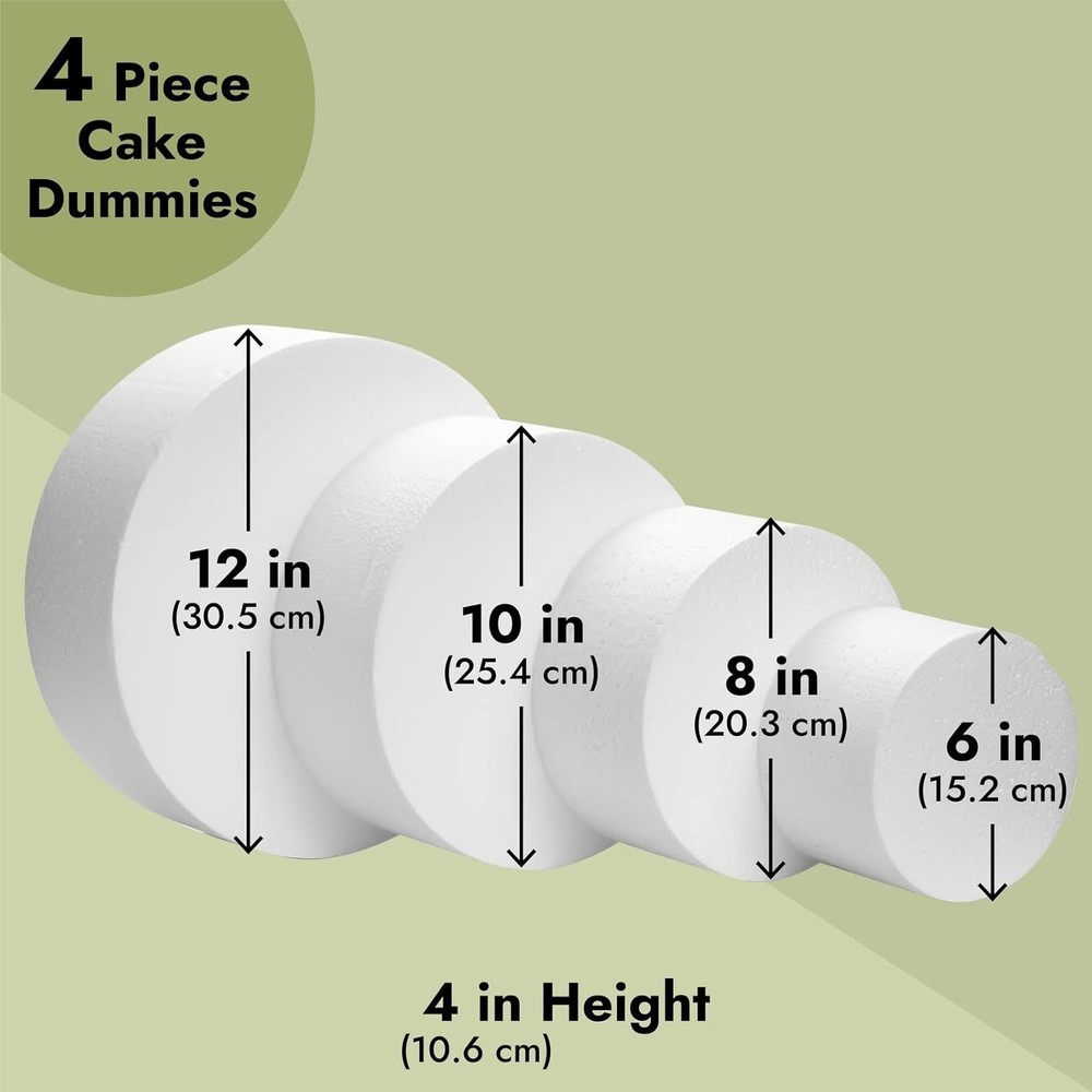 gtin13: Does Not Apply Number of Items: 4 Product Dimensions: 12 X 12 X 4 Inches Number in Pack: 4 Features: Stackable Tier Stacking Kit, Stackable, Lightweight, Decorating Supplies, Practice Decorating, Decorative Display, Easy to Transport, Easy to Decorate Material: Foam Color: White Item Diameter: 6 in Special Feature: Customizable, Lightweight, And Easy To Decorate Personalize: Yes Global Trade Identification Number: 00843128133799 Assembly Required: No Item Weight: 8 Ounces Type: Cake Dummy Occasion: Wedding Brand: Unbranded Base Type: Pedestal Riser Color: White Shape: Round UPC: Does Not Apply Item Dimensions L X W X H: 12 X 12 X 4 Inches Finish Type: Unfinished