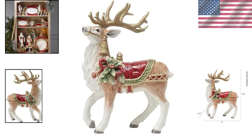 Festive Fitz and Floyd Holiday Deer Figurine ‹ › ‹ › ‹ › ‹ › ‹ › ‹ › Festive Holiday Deer Figurine Make the season bright with this stunning deer figurine—a cherished addition to your Christmas décor that encapsulates the magic of the holidays. Highlights: Beautifully Crafted: Made of exquisite ceramic earthenware, designed to evoke warmth and cheer. Delightful Holiday Colors: Intricately detailed with vibrant red, green, and gold accents that capture the spirit of the season. Impressive Size: Measures 12-1/2 inches high, 9 inches long, and 5-3/4 inches wide—creating a striking statement piece in your holiday décor. Annual Treat: To ensure your figurine lasts for to come, it requires only gentle dusting to keep it sparkling. Why Choose This Figurine? Regal and festive, our Holiday Deer Figurine will be the centerpiece of your holiday celebrations. Whether gracing the dining table or adding charm to a fireplace mantel, this stunning piece is hand-painted and filled with intricate details, making it a delightful addition to your collection that you will look forward to displaying after . Invite elegance and joy into your home this festive season. Order your Festive Holiday Deer Figurine today and ensure that your celebrations are filled with warmth and holiday cheer! Shipping Free & Fast Shipping - We offer free shipping to most of the USA with a normal delivery time of 3-10 business days. However, due to various situations, additional delivery time (up to 3 weeks) may be required for some items. Alternative Carriers - We may use alternative carriers (e.g. USPS, FedEx, UPS, etc.) to ensure your package arrives safely and on time. Due to the use of multiple carriers, we are unable to provide a tracking number automatically. Handling Time - Orders are processed and shipped within 1-5 business days of receiving cleared payment. Shipping Restrictions - Shipping to Alaska, Hawaii, Puerto Rico, Guam, and other US territories may incur shipping charges or delivery restrictions. Please contact us before ordering, or your order can be refunded/cancelled. State Restrictions - There may be restrictions based on your state of purchase. For example, certain items may not be shipped to California due to state regulations. Contact for Tracking Updates - If you require tracking updates or have any concerns about the delivery of your order, please feel free to contact us, and we will be happy to assist you. Return 30-Day Hassle-Free Returns - We want you to be completely satisfied with your purchase. If you are not, you can return the item within 30 days of receiving it for a full refund or exchange. Easy Return Process - To start a return, simply contact us and we will provide you with a prepaid return shipping label and detailed instructions. Restocking Fee - There are no restocking fees for returns. However, the buyer is responsible for return shipping costs if the return is not due to a seller's error. Refund Processing Time - Refunds will be processed within 5 business days of receiving the returned item in its condition. Payment We accept all major credit cards, PayPal, and Apple Pay for your convenience. Your payment information is secure and encrypted to ensure a safe and seamless transaction. Please complete your payment within 3 days of purchase to avoid any delays in shipping. Feedback Your feedback is extremely important to us. We strive to provide the best products and customer service possible. If you are satisfied with your purchase, please take a moment to leave us a positive review. If you have any concerns or issues with your order, please contact us before leaving negative feedback. We are committed to resolving any problems and ensuring your satisfaction. Contact Us If you have any questions or concerns, please feel free to out to our customer support team. You can contact us through the eBay messaging system. We are available Monday to Friday, 9:00 am to 5:00 pm EST, and we will do our best to respond to your inquiry within 24 hours. Buy it now and enjoy a pleasant shopping experience! Unit Quantity: 2.84 lb Material: Ceramic & Porcelain,Ceramic,Earthenware Features: Hand Painted Type: Figurine Subject: Deer Occasion: Christmas Collection: Holiday Home Color: Red Finish: Glossy Style: Traditional Size: Large Number in Pack: 1 Shape: Asymmetrical Item Weight: 2.84 lb