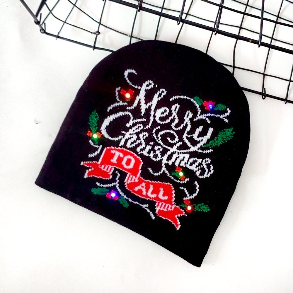 Christmas Beanie Hat with Lights Xmas Tree Deer Snowman Hat Skull Cap Item includes: 1 piece Material: Acrylic Size: Regular Kindly Reminder: The measurement varies 1-3 cm. (1 inch=2.54 cm) The color of the real item may slightly vary due to different screen setting or camera setting, thanks for your understanding. If you have any question or requirement, please don't hesitate to contact us. Payment Delivery details Terms of sales About us Contact us Payment Immediate Payment is required before we ship the item. Delivery details 1. We are located in China, the delivery time via Standard shipping is 8-16 business days and Economy shipping 10-20 business days to US, UK, German, Australia and EU. The delivery time varies in peak period or during your holidays and our's. (Handling time is not included) 2. We will input the tracking number to your order after we ship your item, the tracking information will be available in 2-3 business days after it arrives to the carrier. Terms of sales 1. We are not responsible for i mport duties, taxes and charges on the item you purchase . 2. Please check with your customs office if there would be any additional costs when picking up your item. About us 1. We are mainly selling hot Anime, Cartoon, Movie, Game related items and keep updating and fashion. Due to the development of our company, we are running this new store to sell these kinds of items. We are professional and with plentiful selling experience . 2. Our products are of good quality , reasonable prices, we examine every product before sending to our customers. We strive for 100% customer satisfaction. Contact us 1. Please contact us via eBay My Message mailbox . 2. If there's no response , please send us the message again . W e will reply to your message in 24 hours except we are on Holidays .