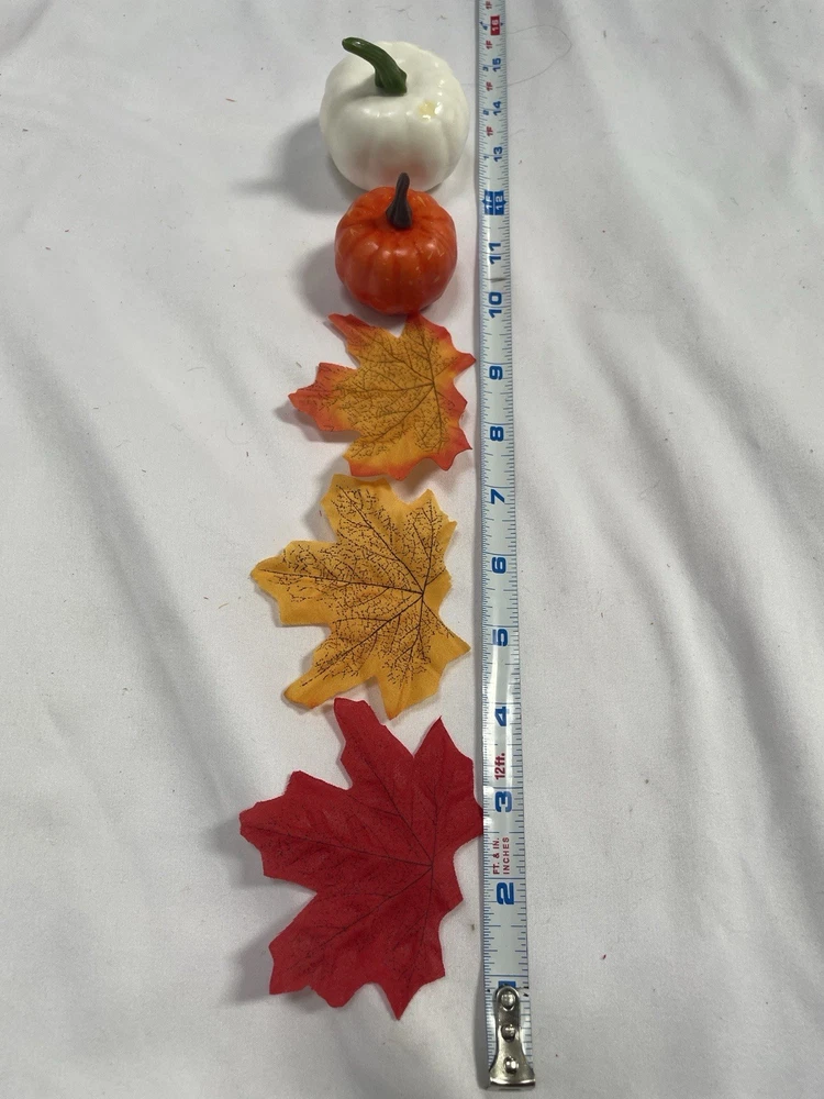 The Holiday Pumpkin and Leaves Set is a festive decoration perfect for Halloween or any fall celebration. The set includes pumpkins and leaves in a variety of colors, adding a seasonal touch to your home decor. The multicolor design adds a vibrant and festive vibe to your table decor, making it a charming addition to your holiday decorations. Perfect for creating a cozy and whimsical atmosphere during the Halloween and fall season. Each set comes with 8 pumpkins and approximately 30 leaves.