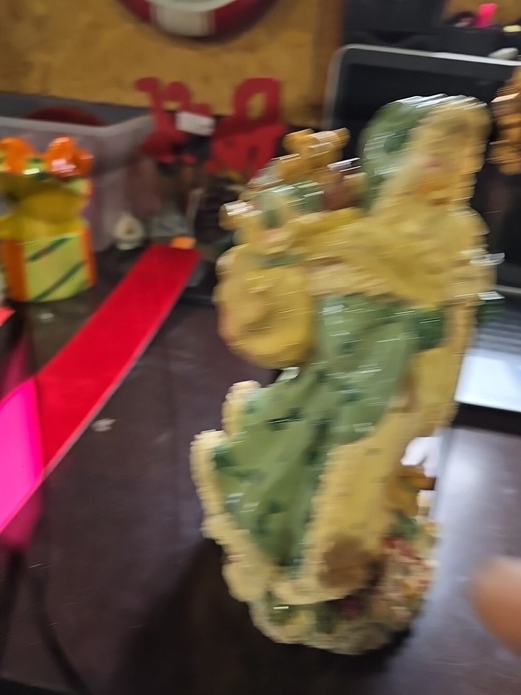 This Santa Figurine is a late 20th-century Christmas decoration made of multicolor resin. Standing at 10.5 inches tall and measuring 6 inches in both length and width, this original piece features a jolly Santa Claus design. The figurine captures the festive spirit of the holiday season and would make a charming addition to any holiday or seasonal decor collection.