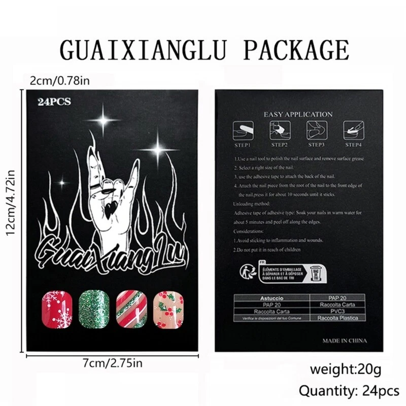 Features: Elevating your game with 24pcs Christmas Press on Nails, sophisticated artificial nails for stylish look. Craft from friendly ABS, both fashion and convenience, ensuring a natural look and comfortable fit for daily wear and party use. Great for fashion individuals and beauty enthusiasts, these artificial on nails cater to those who love to expressing their personality through their manicure. Whether it is a Christmas party, family gathering, or everyday wear, these press on nails add a touch of to your fingertips for any occasion. Great gift for your wife, girlfriend, mother or sister. Specifications: Component: ABS Color: As picture shown Size:approx. As picture shown Quantity: 1box(24pcs, included 24tips false nails) Package Includes: 1box Christmas Press on Nails note: Please allow 1-3cm error due to manual measurement. please sure you not mind before you bid. Due to difference between different monitors, the picture may not reflect the actual color of item.