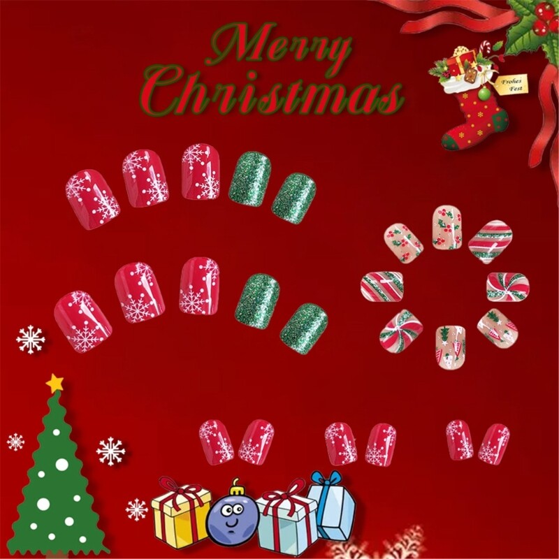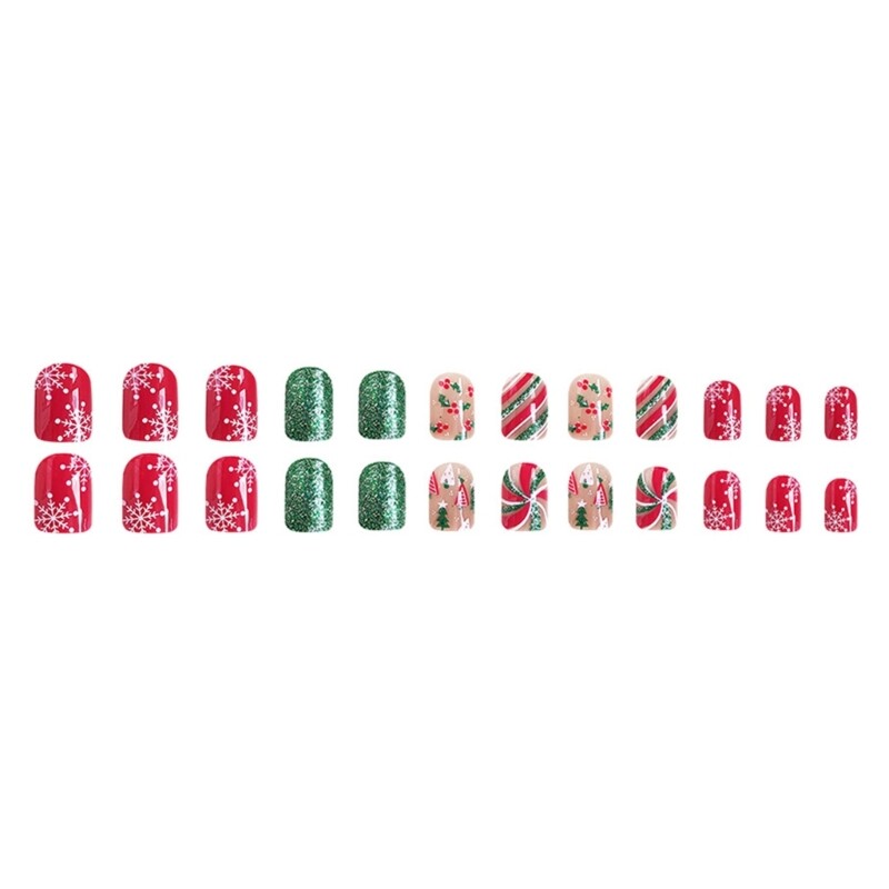 Festive Short Square Christmas Press-On Nails 24Pcs Holiday Glam